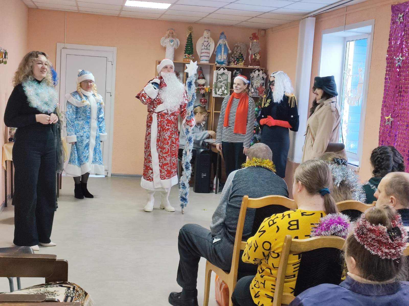 Конец уходящего года — время душевных праздников, театрализованных представлений, подарков от Деда Мороза и Снегурочки, а также социальных мероприятий, направленных на интеграцию инвалидов в общество и их поддержку. В отделении социальной реабилитации, абилитации инвалидов и дневного пребывания для граждан пожилого возраста Климовичского РЦСОН прошло праздничное новогоднее мероприятие «Елкины проделки», подготовленное сотрудниками центральной районной библиотеки.
