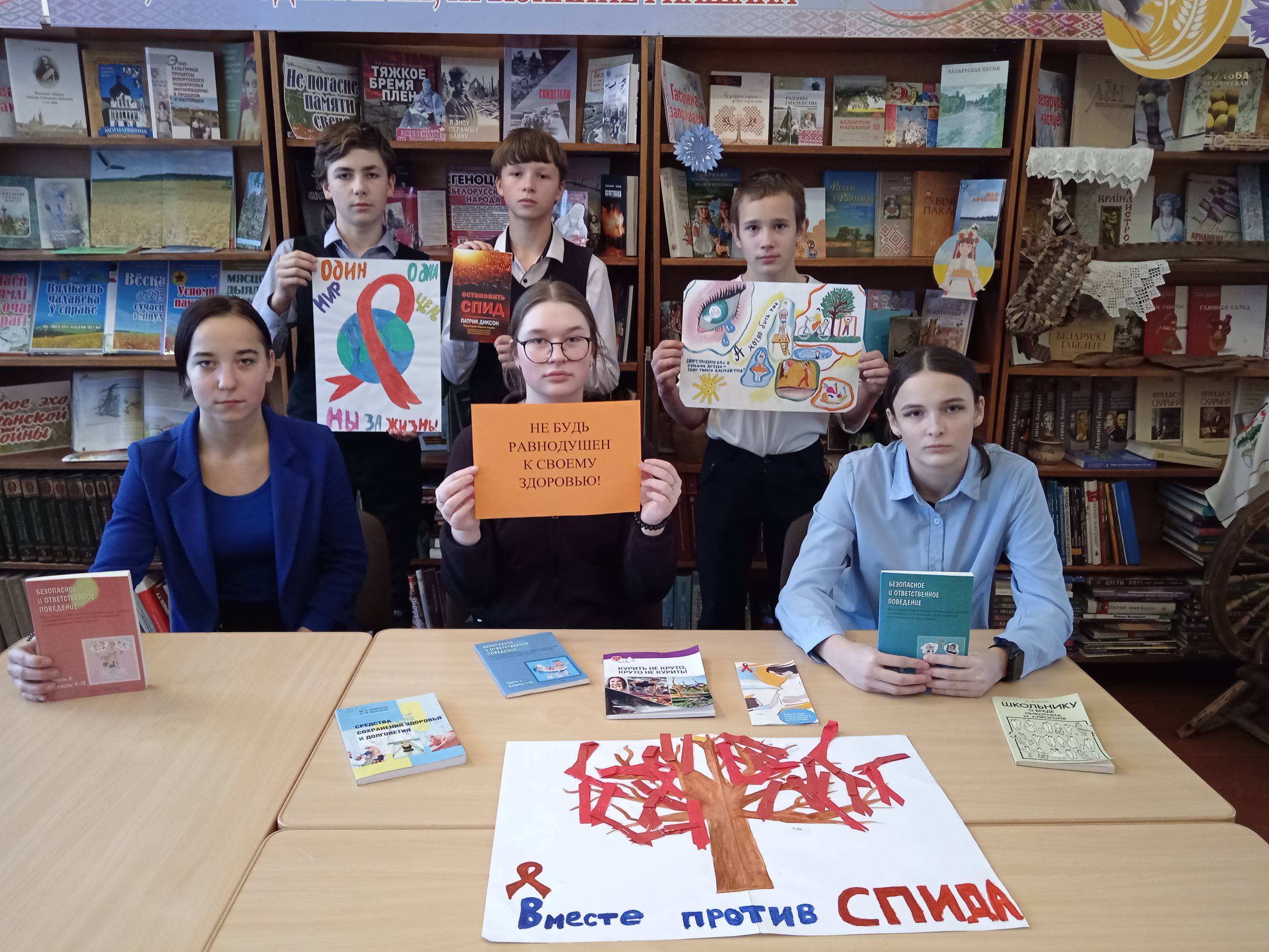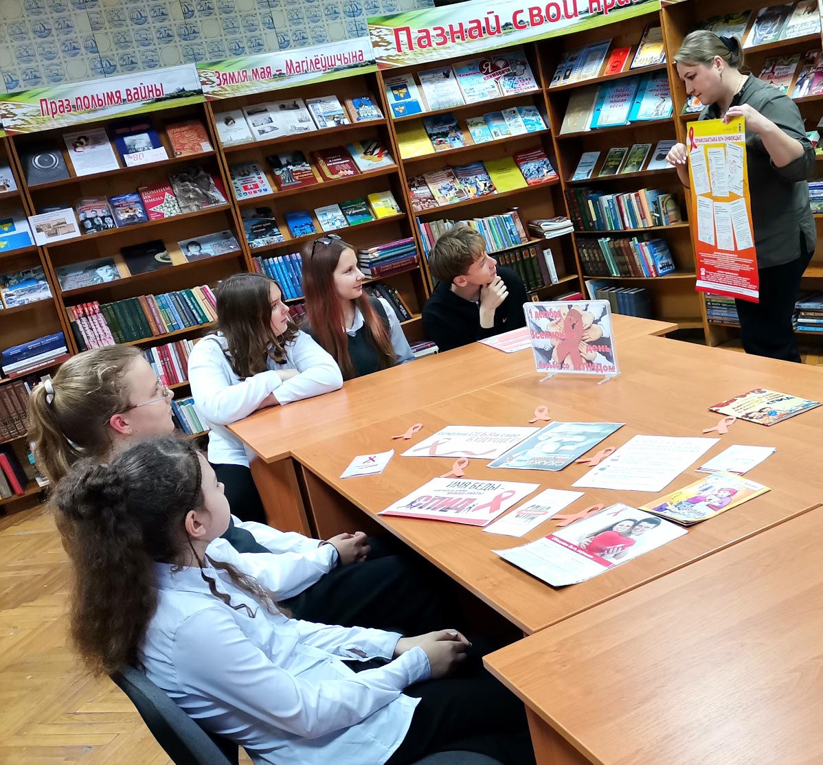 К этому дню в Родненской сельской библиотеке для учащихся сельской школы был проведён час общения «Не будь равнодушен к своему здоровью!». В ходе встречи школьники узнали историю появления синдрома приобретенного иммунного дефицита, его отличие от ВИЧ-инфекции, симптомах этой болезни, путях заражения и мерах профилактики. В конце мероприятия библиотекарь порекомендовала ребятам книги, информационные листовки и памятки, благодаря которым они смогут больше узнать по профилактике ВИЧ/СПИДа.
