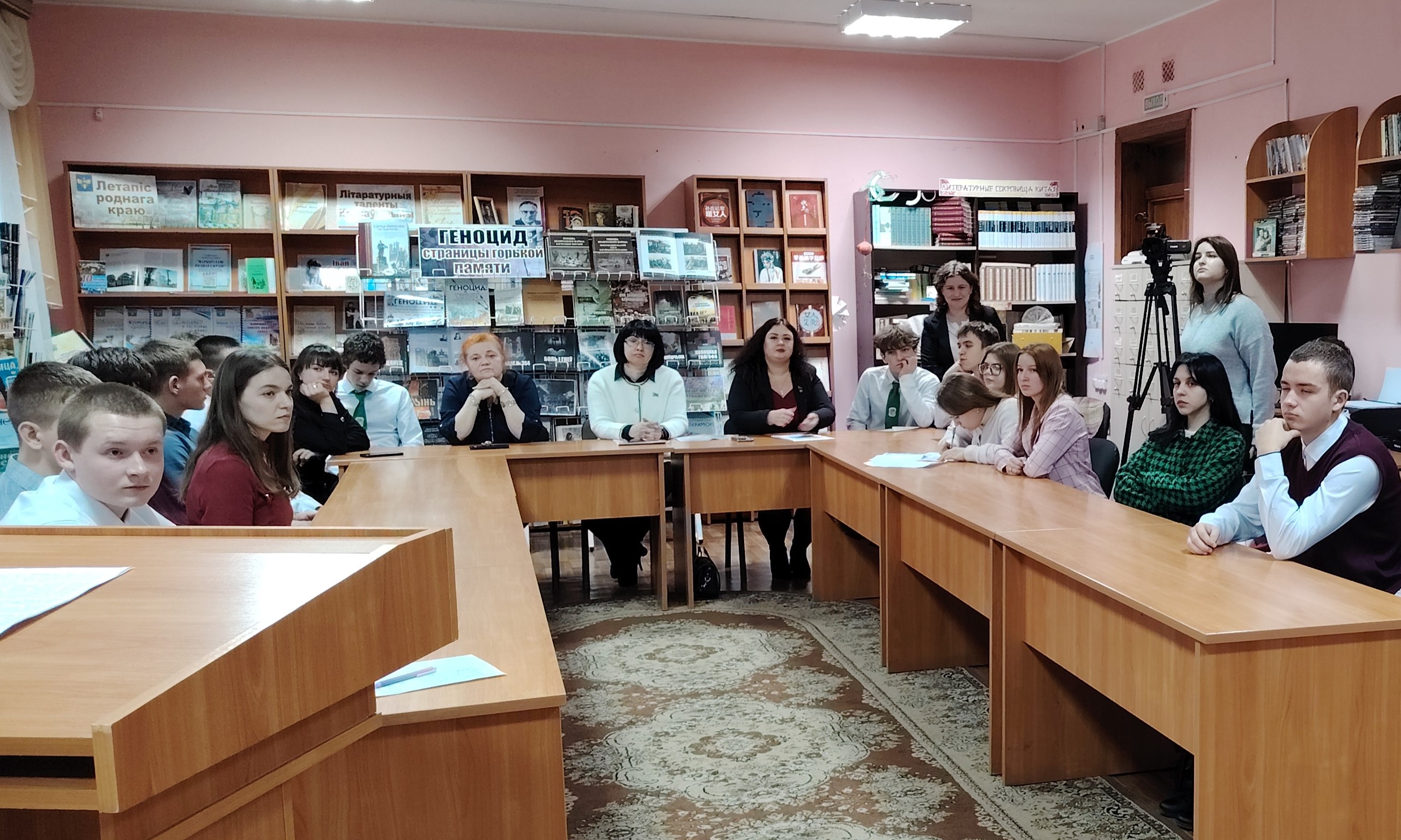 Тростенецкий лагерь смерти, Луполовский лагерь военнопленных, Озаричский концлагерь, донорский детский концлагерь в деревне Красный Берег Жлобинского района – на этих и других лагерях массового уничтожения мирного населения и военнопленных, а также о масштабах геноцида белорусского народа, осуществленного нацистскими оккупантами и их пособниками в годы Великой Отечественной войны, акцентировали внимание ведущие мероприятия, библиотекарь Елена Железняк и заведующий отделом обслуживания и информации, член районной организации ОО «Белорусское общество «Знание» Ольга Максимович.