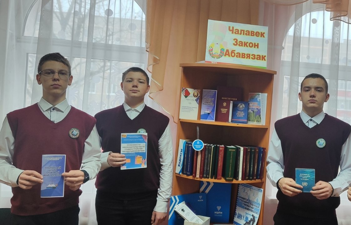 Так, в центральной районной библиотеке для учащихся Полошковской средней школы Климовичского района прошел информационно-правовой час «Знать закон - знать свои права». В ходе мероприятия заведующая отелом обслуживания и информации напомнила об основных международных документах, которые определяют права и свободы каждого жителя планеты. Участники узнали историю создания Всеобщей декларации прав человека, обсудили, о каких правах и обязанностях говорится в этом документе, познакомились с международными и государственными документами Республики Беларусь, в которых закреплены права человека.