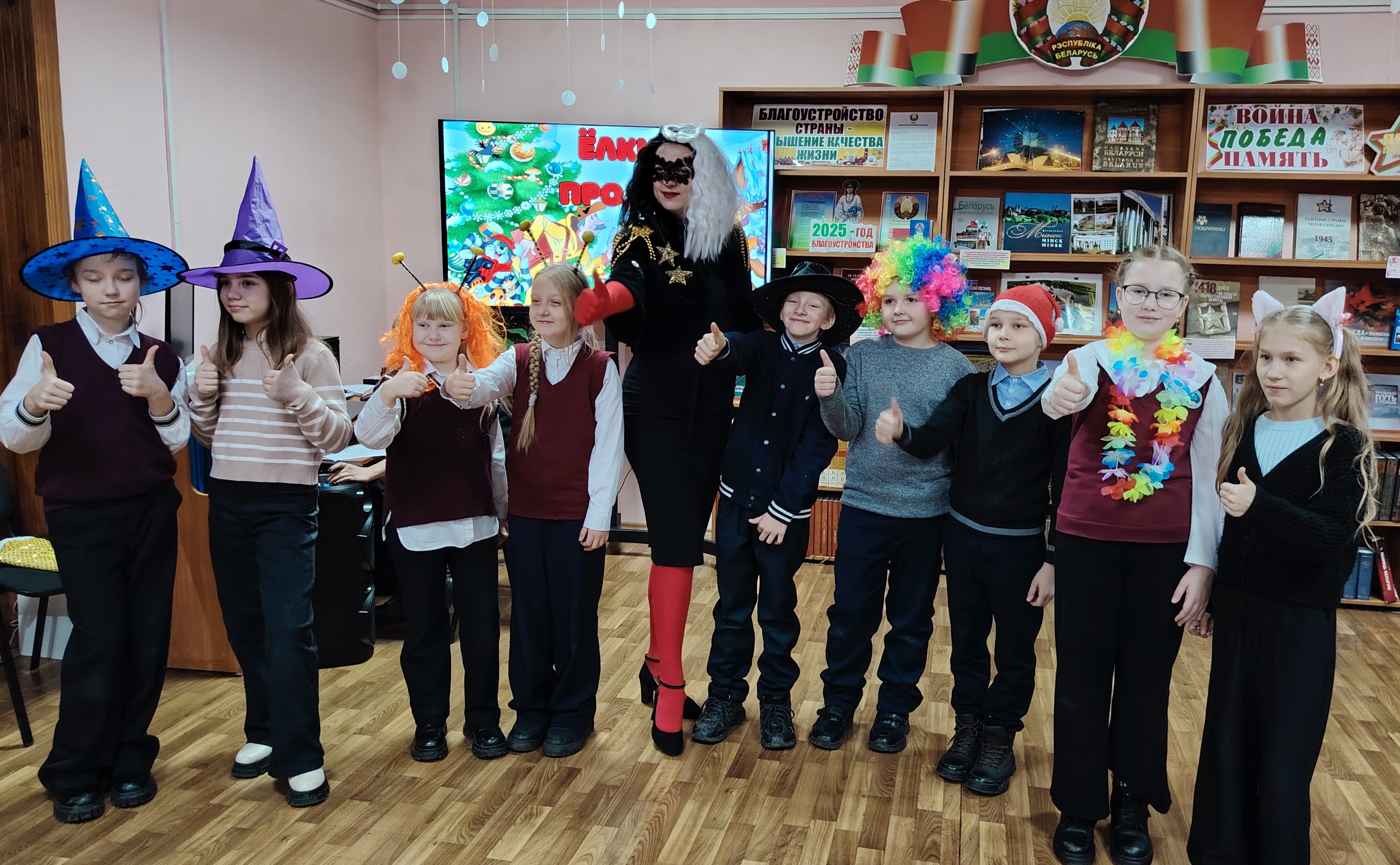 В преддверии волшебного праздника в городской библиотеке № 1 состоялся настоящий сказочный перформанс — чародей-вечер «Новогодние приключения в королевстве Кривых зеркал». Это был не просто праздник, а интерактивное путешествие для юных читателей, ребят из пришкольного лагеря средней школы № 4, в мир любимой сказки. Гости стали не просто зрителями, а полноправными участниками удивительной новогодней истории. Вместе с Олей, которая поделилась своей волшебной историей о приключениях в королевстве Кривых зеркал, ребята отправились спасать Новый год, который решил испортить коварный Нушрок.