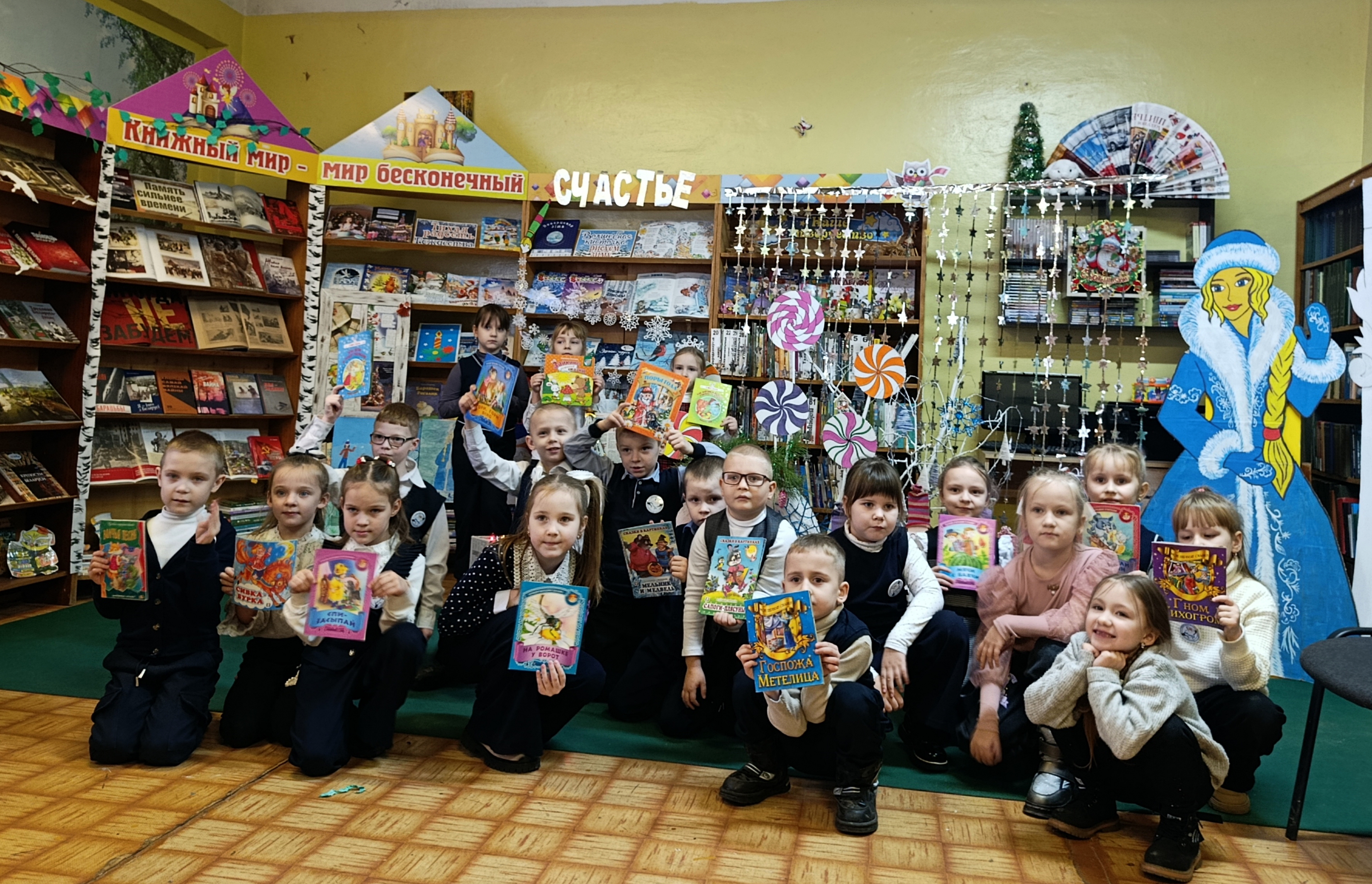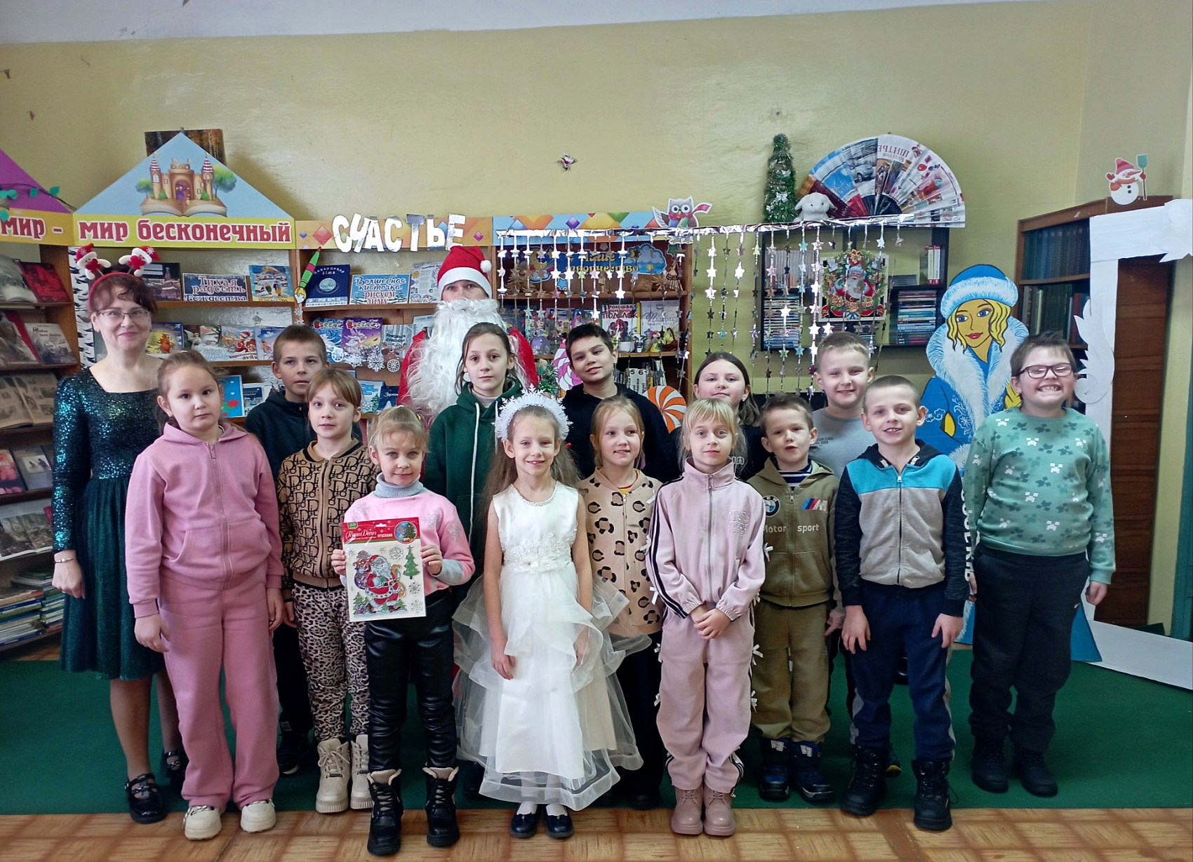 Кульминацией праздника стали песенка от маленького сказочного эльфа и веселые танцы с играми. Дети ушли с сияющими глазами, новогодними сладкими сюрпризами и, конечно же, с книгами для чтения на каникулах.