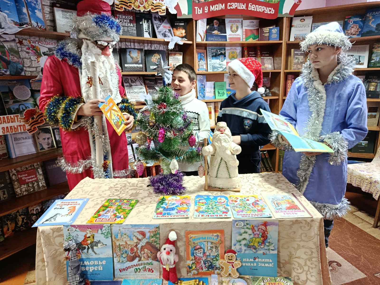 В Родненской сельской библиотеке Дед Мороз и Снегурочка провели для ребят литературную карусель «Снежная-нежная сказка зимы». Ребята прикоснулись к новогодним чудесам, с помощью весёлых игр и конкурсов создали себе новогоднее настроение, активно участвовали в конкурсах «Кто больше», «Сказки зимы», «Удержи снежинку», «Дотянись до приза».