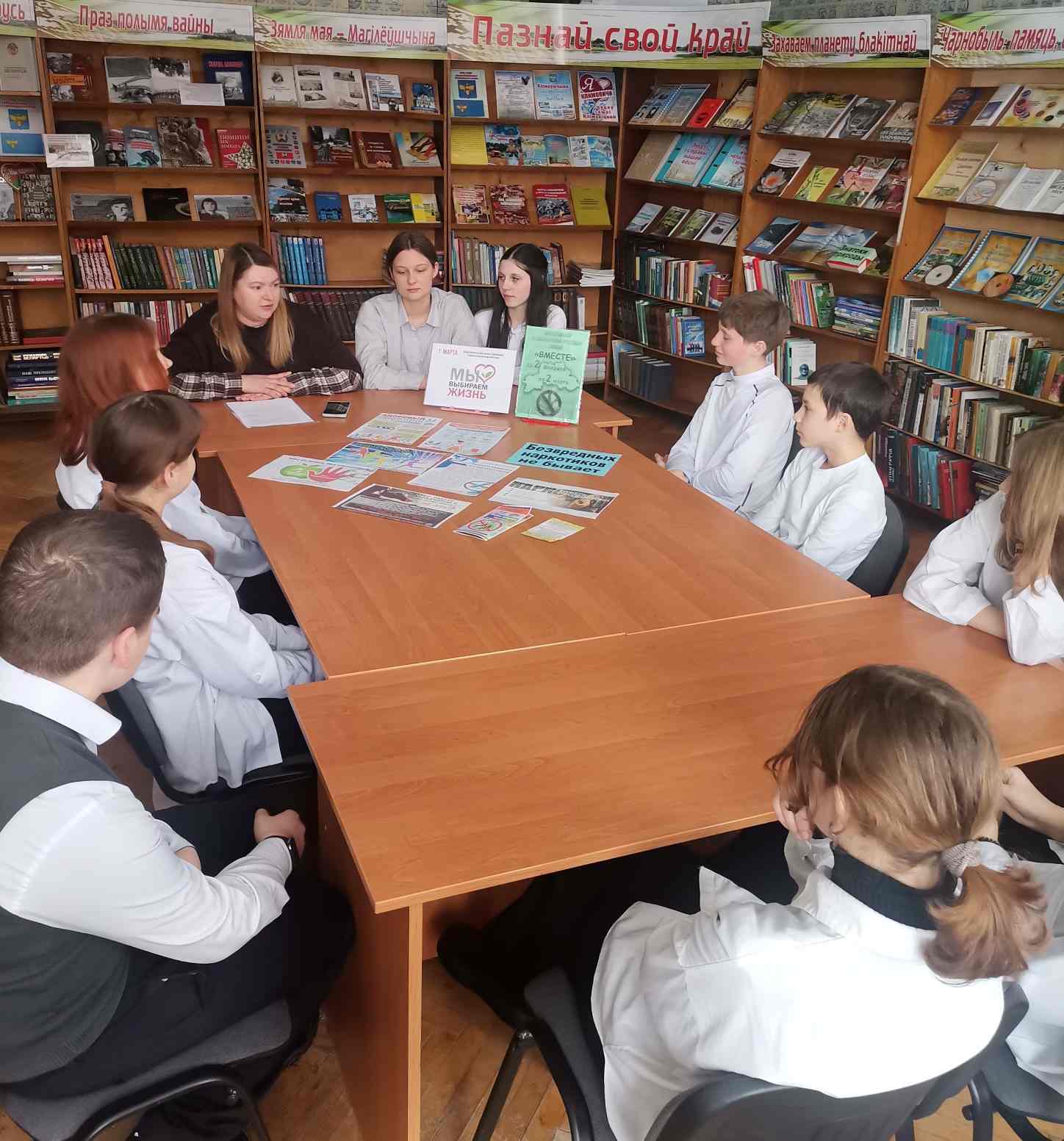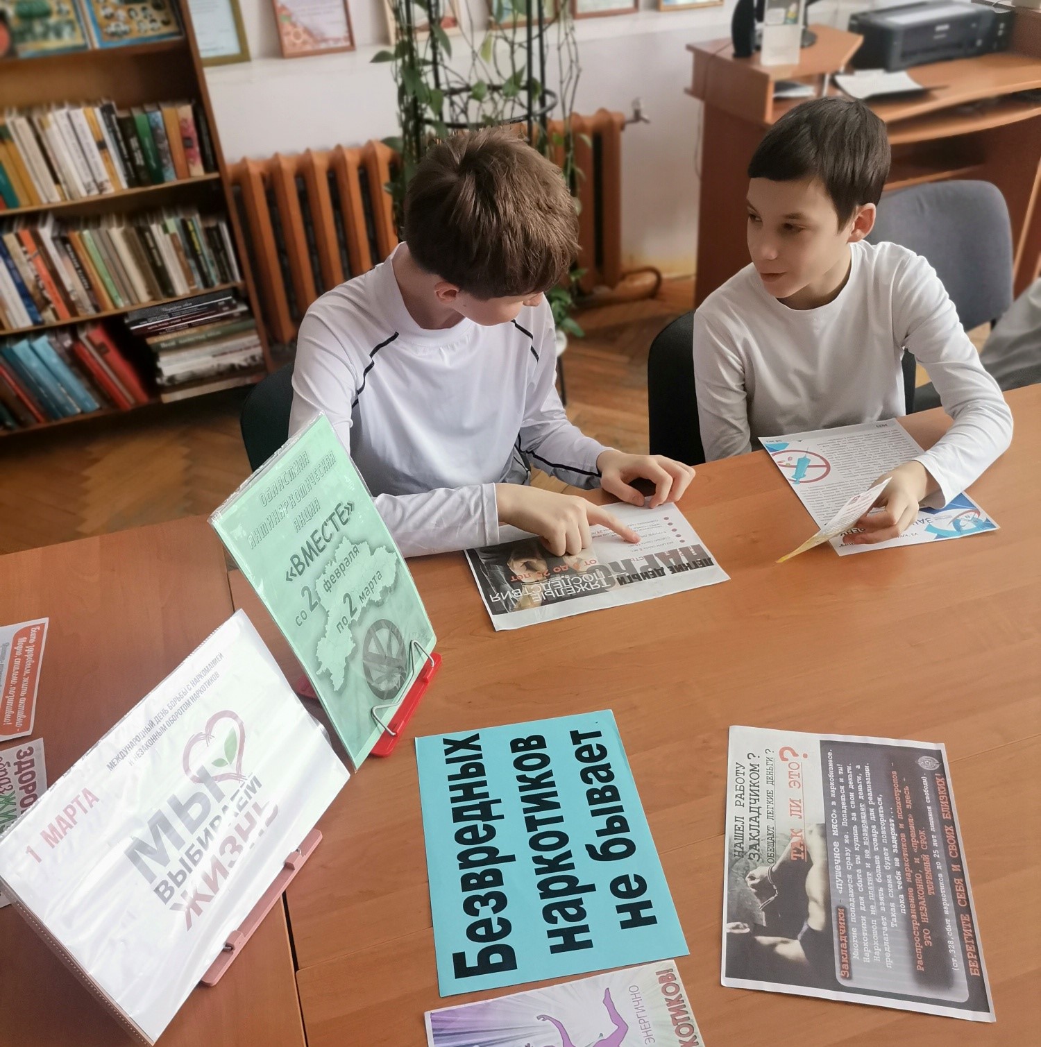 В центральной библиотеке для учащихся 10 класса третьей городской школы был проведен информационный час по профилактике наркомании «Это важно знать!», который был направлен на формирование у молодежи здорового образа жизни и негативного отношения к употреблению наркотиков. Были вручены памятки «Скажи наркотикам НЕТ!» со способами как отказаться от предложений попробовать психоактивные вещества. Ребята познакомились с тематической выставкой, посвященной проводимой с 2 февраля по 2 марта 2026 года в Могилевской области антинаркотической акции «Вместе».