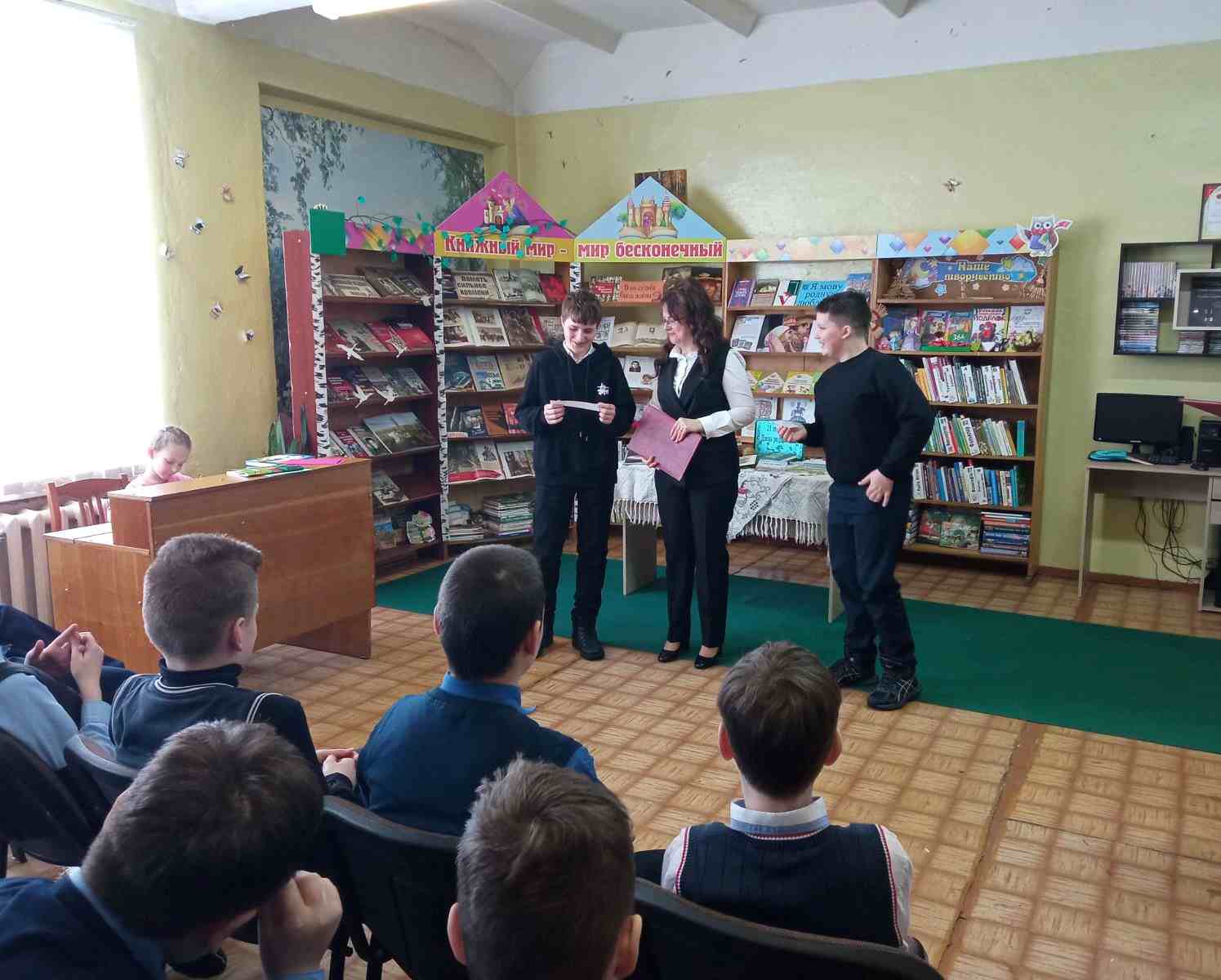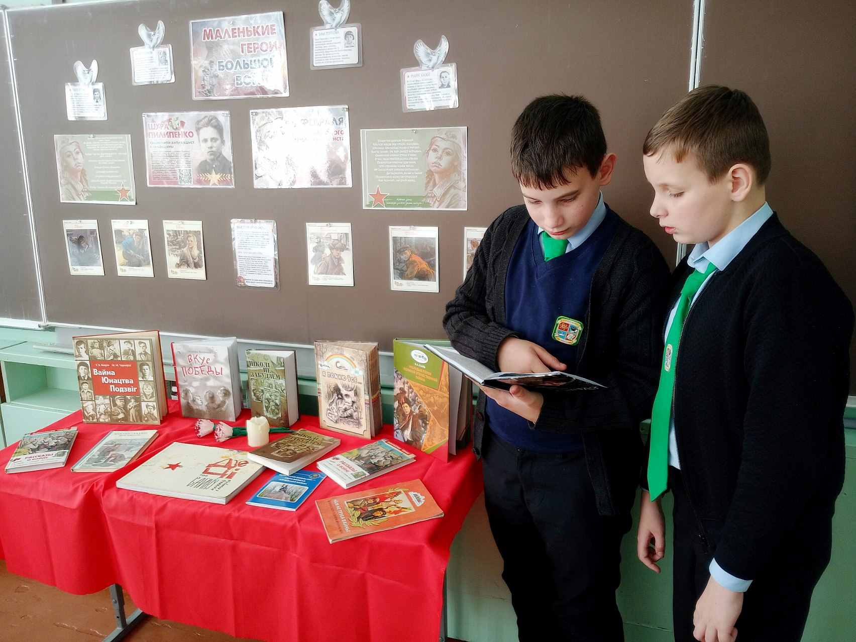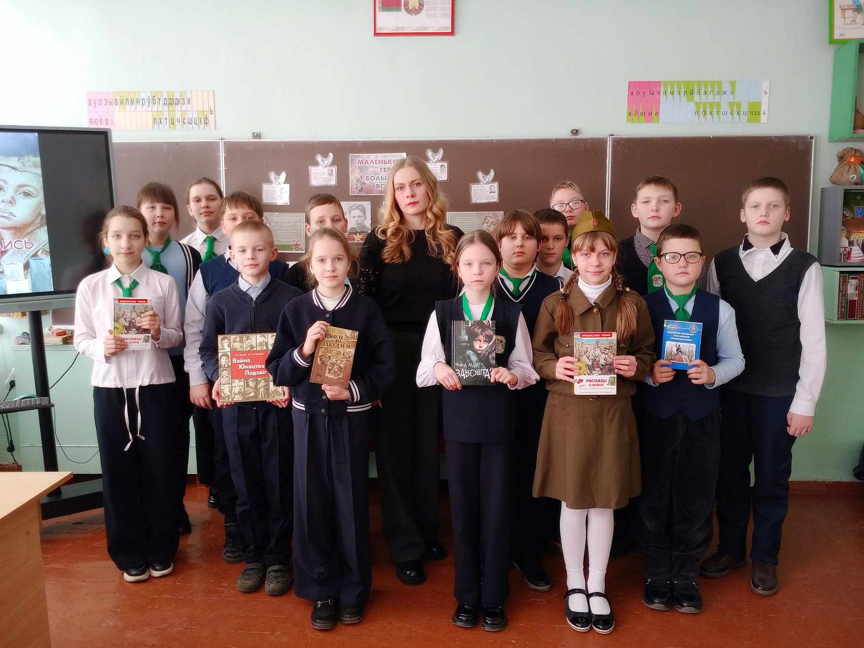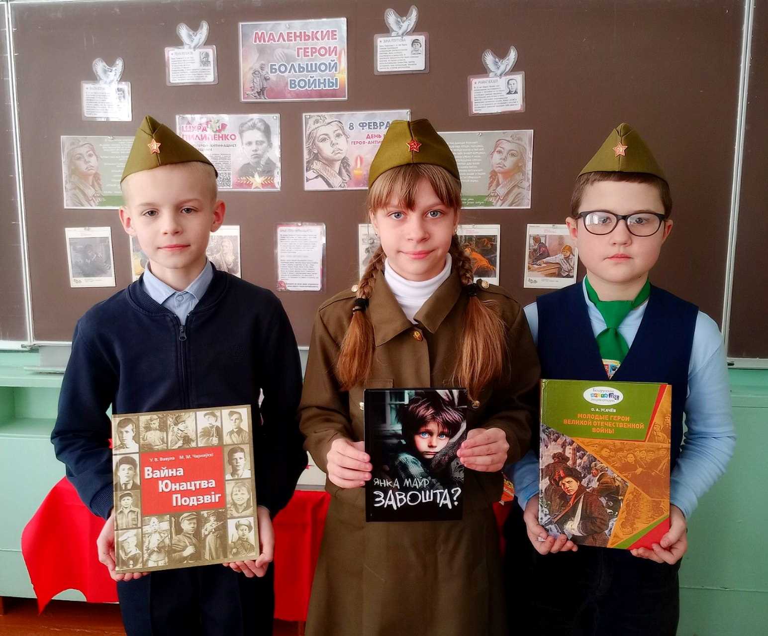 Сотрудниками детско-юношеского сектора центральной библиотеки для учащихся пятых классов Климовичской районной гимназии им. И.С. Николаева был подготовлен час интересной книги «Юными остались навсегда». В ходе мероприятия библиотекарь рассказала о мальчишках и девчонках, которые за подвиги, совершённые в годы Великой Отечественной войны, были удостоены самой высокой награды Родины — звания Героя Советского Союза. Школьники с интересом слушали рассказ о своих ровесниках: Лёне Голикове, Зине Портновой, Марате Казее, Вале Котике и других пионерах-героях, чей подвиг навеки останется в памяти поколений. Во время урока учащимся была представлена книга Янки Мавра «Завошта», в которую вошли самые значимые произведения о Великой Отечественной войне. Янка Мавр в ней подробно раскрыл истории детских судеб, болью которых стала война. В книге остро поставлен вопрос: за что страдают и умирают дети, которые не знают зла и любят весь окружающий мир?