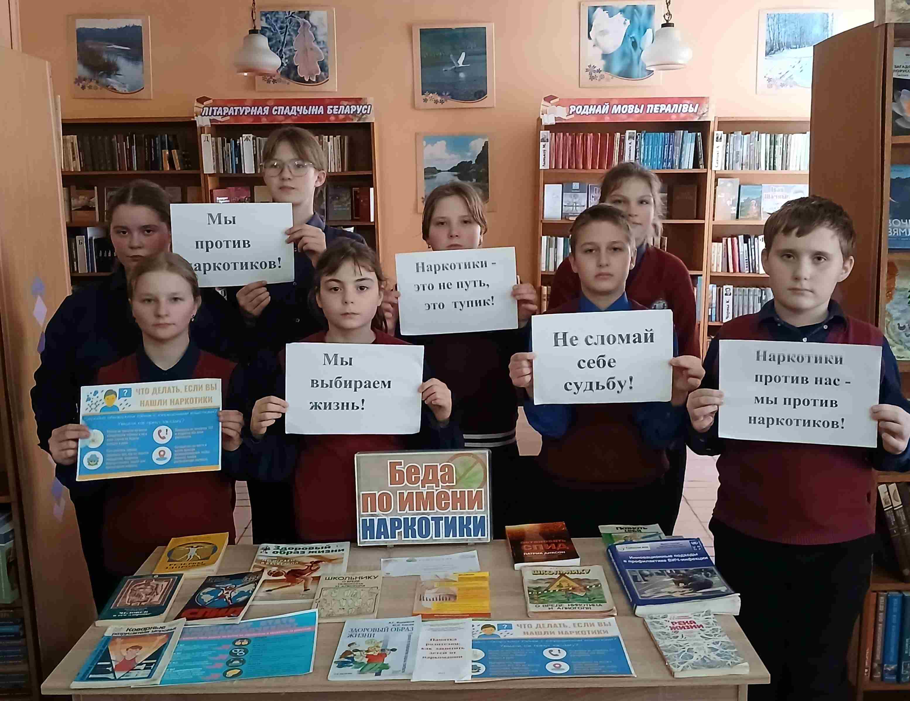 В Лобжанской сельской библиотеке подготовлена тематическая выставка «Мир без наркотиков» и проведены беседа «Как защитить детей от наркомании» и информационный час «Точка невозврата», в Малышковичской сельской библиотеке проведена акция «Любопытность ценою в жизнь», а в библиотеке агрогородка Родня прошел познавательный час «Общество без наркотиков - наш выбор».