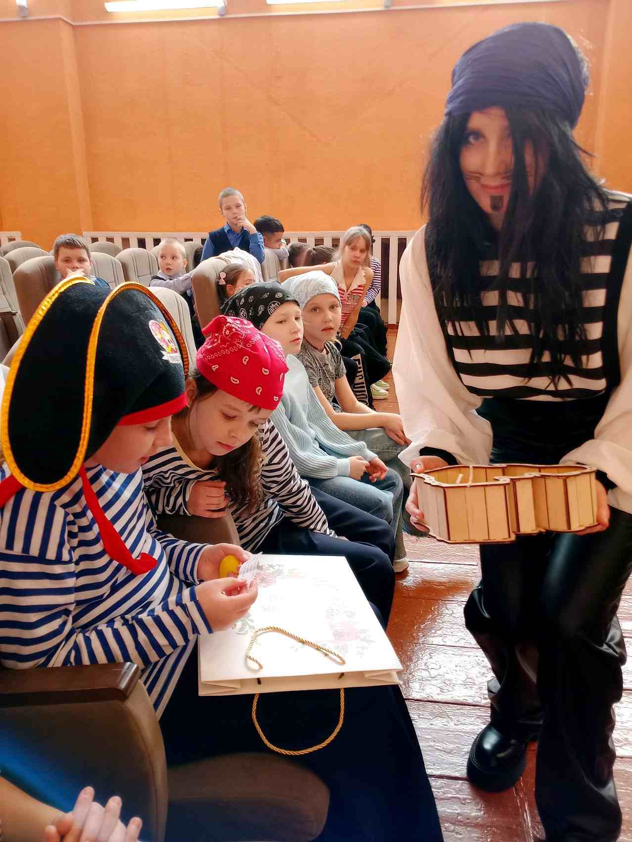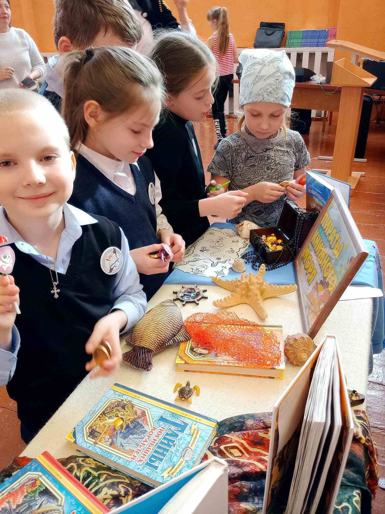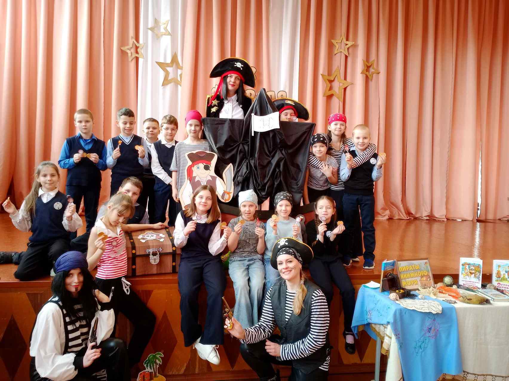 27 февраля сотрудники детско-юношеского сектора центральной библиотеки для учащихся третьих классов средней школы № 4 подготовили захватывающую морскую вечеринку «Пиратская бухта». Обряд посвящения юных искателей приключений в пираты провел капитан «Библиокорабля» Джим, который помог двум дружным командам «Моряки» и «Морские львы» произнести пиратский девиз и отправится в морской круиз в поисках сокровищ. Но внезапно корабль подвергся нападению хитрых и коварных морских разбойников...
