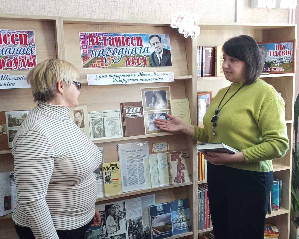 Напярэдадні юбілея І. Мележа ў цэнтральнай районнай бібліятэцы адкрылася выстава-партрэт «Волат палеская зямлі». Іван Мележ падарыў нацыянальнай літаратуры нямала таленавітых твораў, сярод якіх навелы і апавяданні, п'есы і раманы, дзённікі і артыкулы. Але, мабыць, галоўнай у яго асабістым лёсе і каханай сярод розных пакаленняў чытачоў стала трылогія “Палеская хроніка”, у якой Мележ так тонка і самабытна, як ніхто іншы, расказаў пра роднае беларускае Палессе і яго жыхароў. Раманы “Людзі на балоце”, “Подых навальніцы” і “Завеі, снежань” былі перакладзены на рускую, казахскую, нямецкую, кітайскую і іншыя мовы, дзякуючы чаму пра Мележа даведаліся ў свеце.