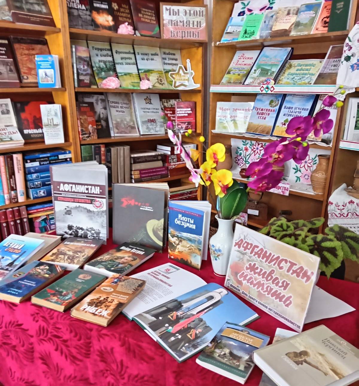 В читальном зале центральной районной библиотеке организована книжная выставка «Долг. Память. Честь», на которой представлены историко-документальные, художественные издания, книги воспоминаний свидетелей и участников Афганской войны, рассказывающие о периоде пребывания советских войск в Афганистане (1979–1989 гг.), о верности воинскому долгу и присяге, мужестве и профессионализме воинов, прошедших службу и выполнивших свой интернациональный долг.