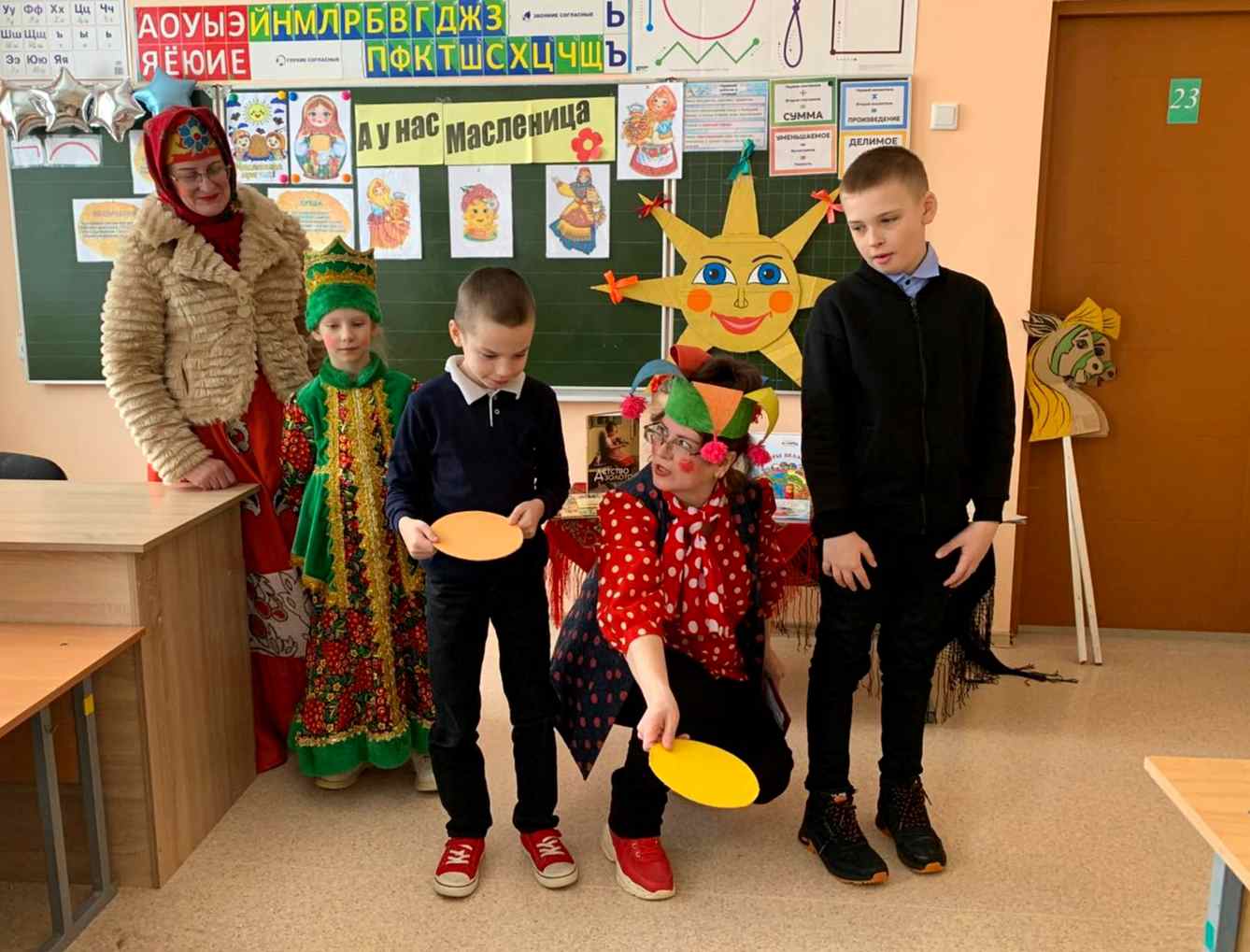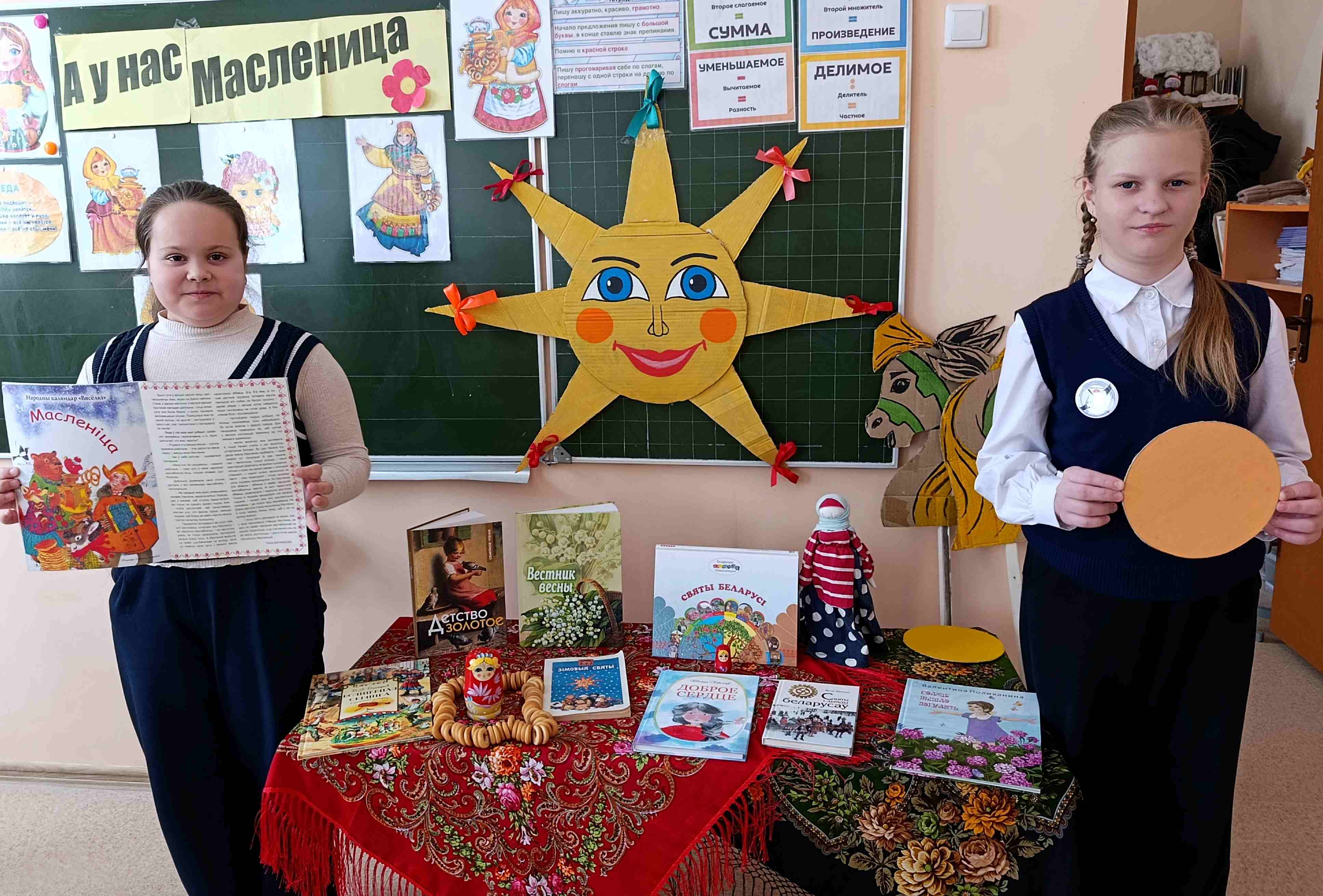 Для учащихся 4 классов средней школы № 4 сотрудниками городской библиотеки № 1 совместно с Тимоновским сельским Домом культуры проведена театрализованно-игровая программа «Масленица хороша, широка ее душа». Ребята совершили увлекательное путешествие в историю праздника: узнали, почему масленичный блин является символом солнца, как называются каждый из дней Масленичной недели. Дети с удовольствием отгадывали загадки о блинах, весне и народных традициях.
