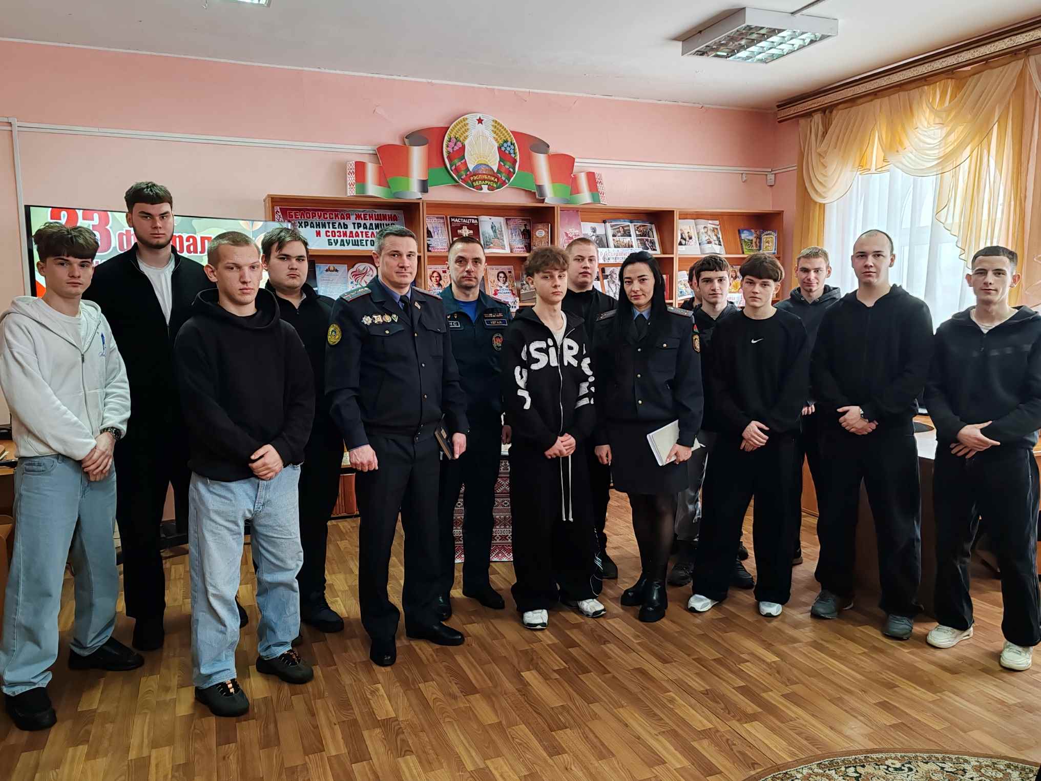 В начале мероприятия всех присутствующих поздравили с праздником — Днем защитников Отечества и Вооруженных Сил Республики Беларусь. Гости рассказали об особенностях своей профессии, ответили на многочисленные вопросы, одним из которых стал вопрос, где можно приобрести военную специальность и какие качества должны быть у поступающих в военные заведения. Проверить свои знания боевой истории страны помогла тематическая викторина «Военное наследие».