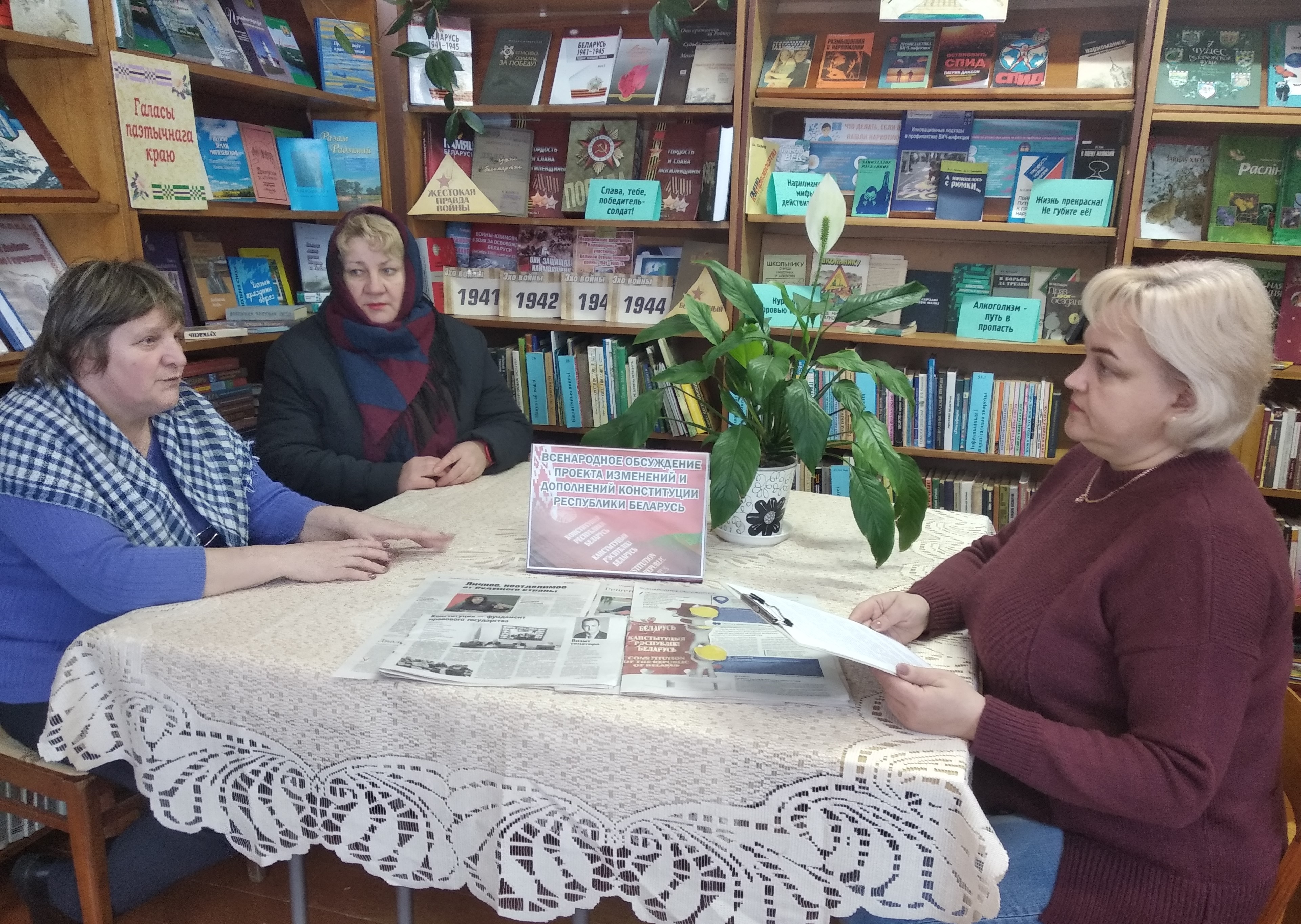 Центральная районная библиотека и районная организация РГОО «Белорусское общество «Знание» проводят диалоговые площадки, где климовчане обсуждают проект изменений и дополнений Конституции Республики Беларусь.