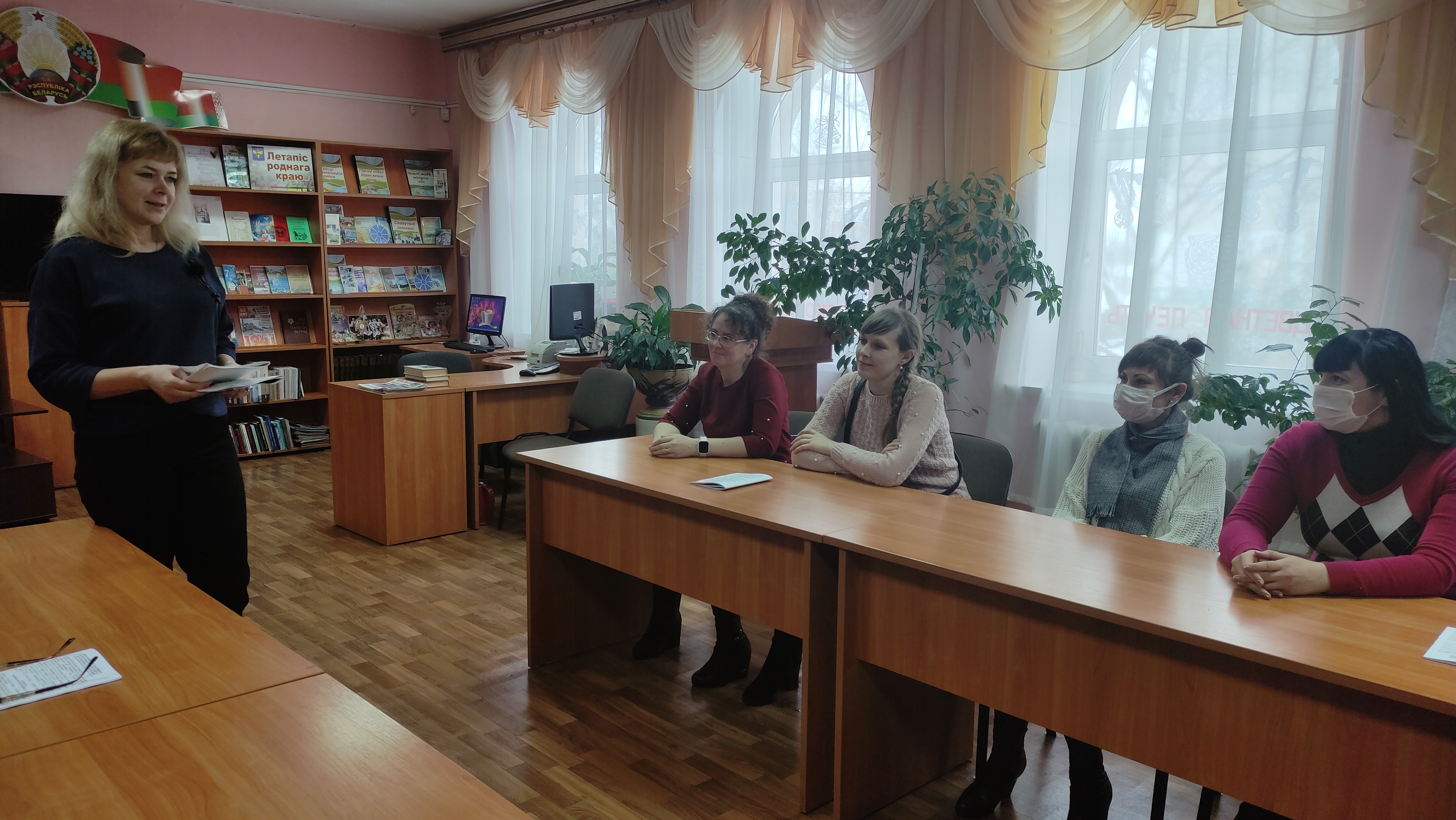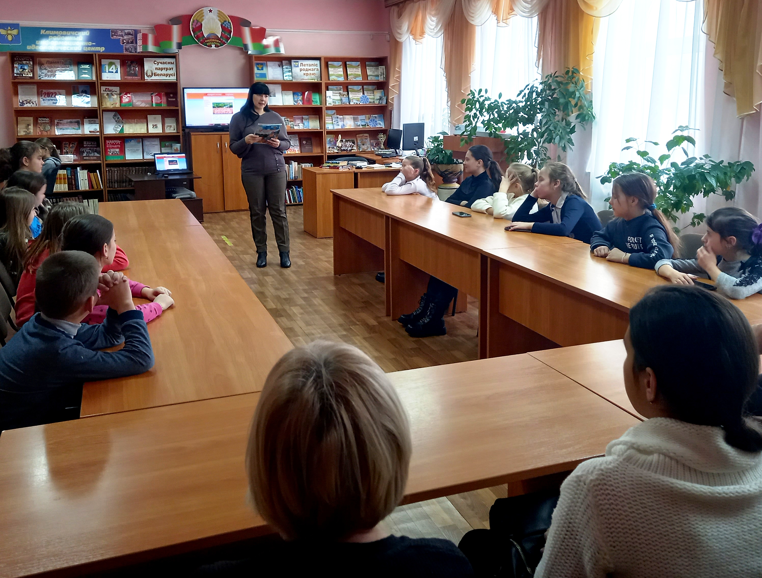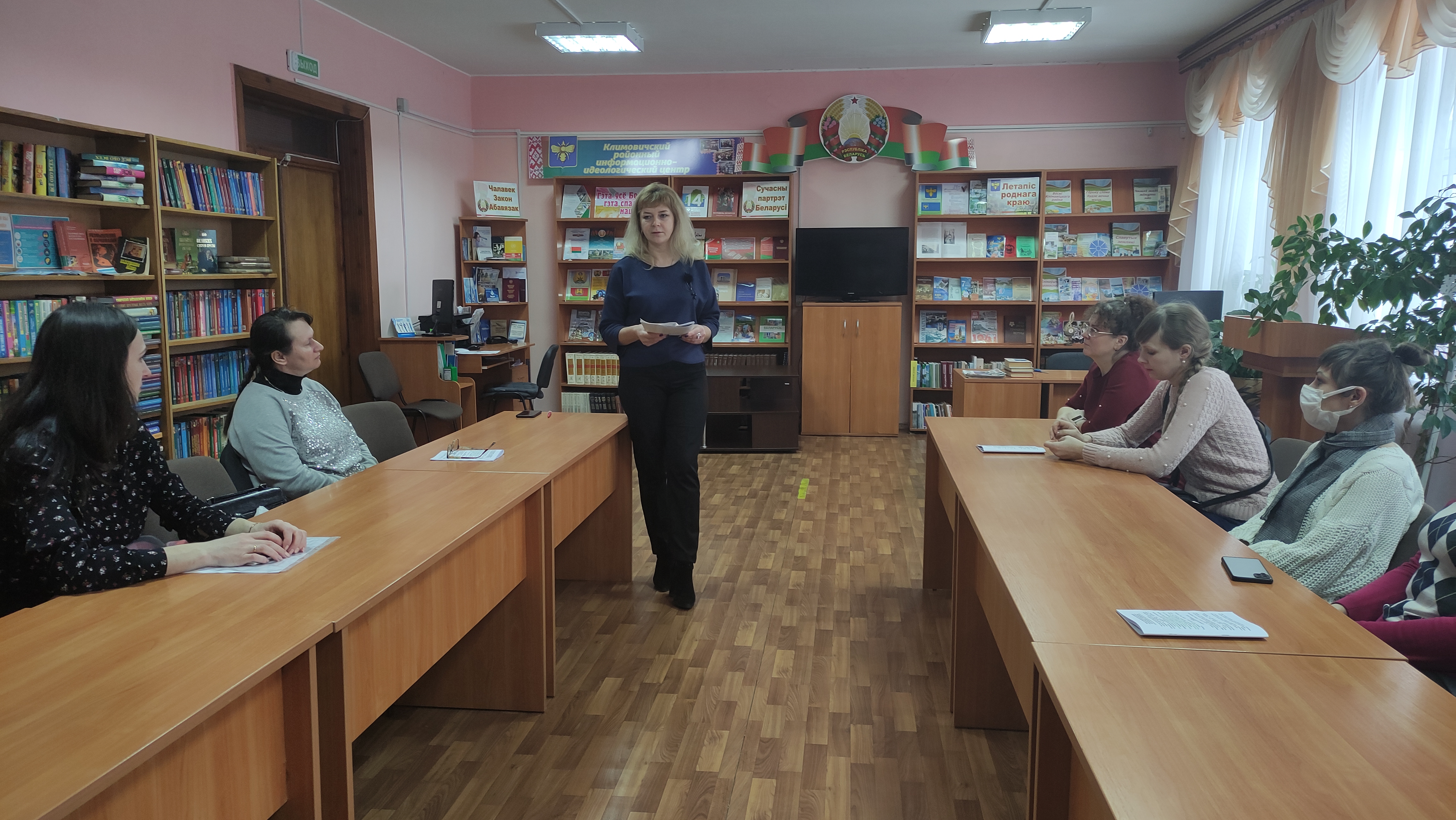 В коллективе Климовичской библиотечной сети прошла встреча на тему проекта изменений и дополнений в Конституцию Республики Беларусь. Директор, председатель районной организации РГОО «Знание» рассказала о законотворческой деятельности и проделанной работе по созданию Основного Закона страны, подробно остановилась на ряде направлений, касающихся социальной политики, защиты института семьи, инновационной сферы, президентской власти, сохранения национальной самобытности и исторической памяти.