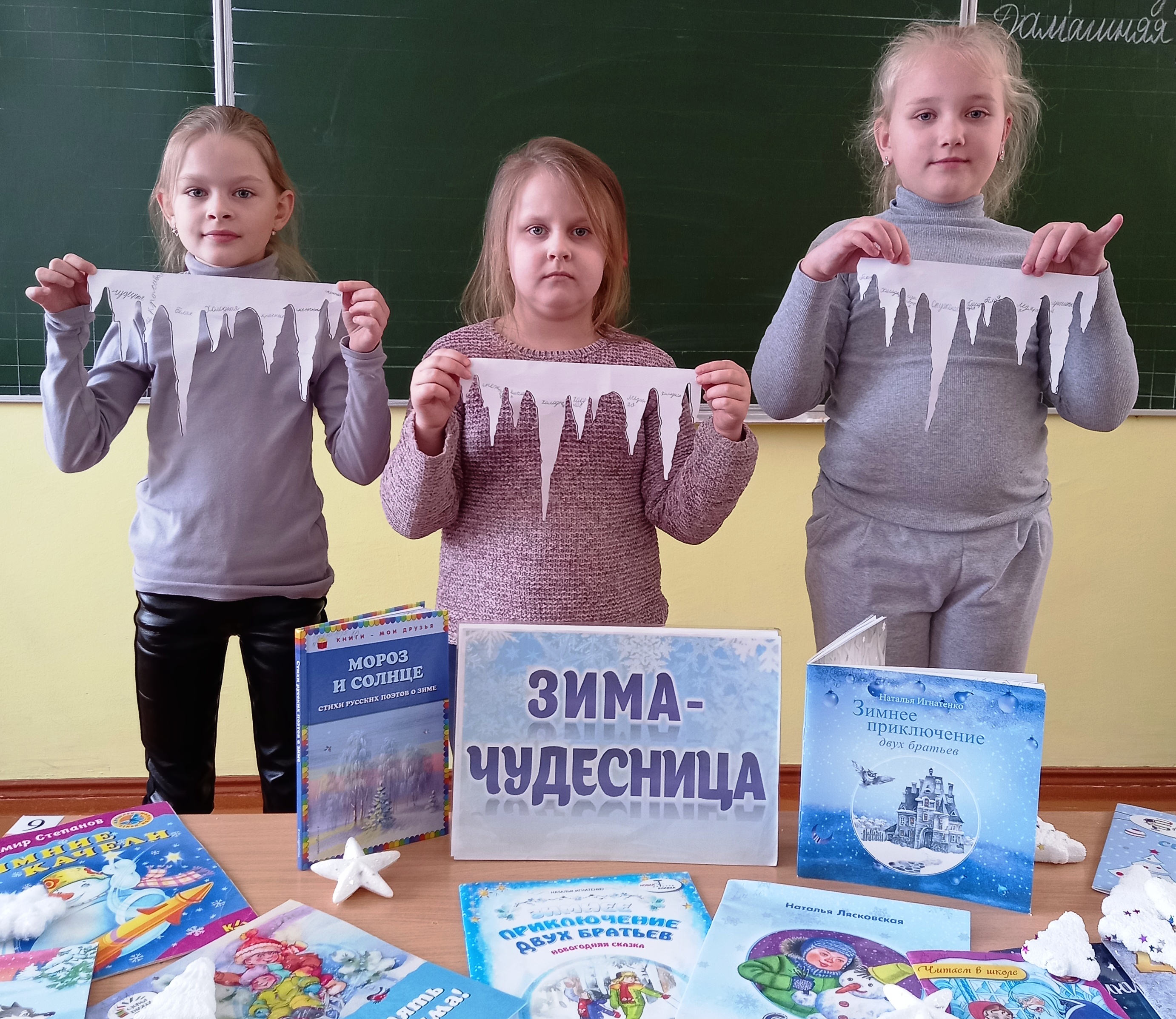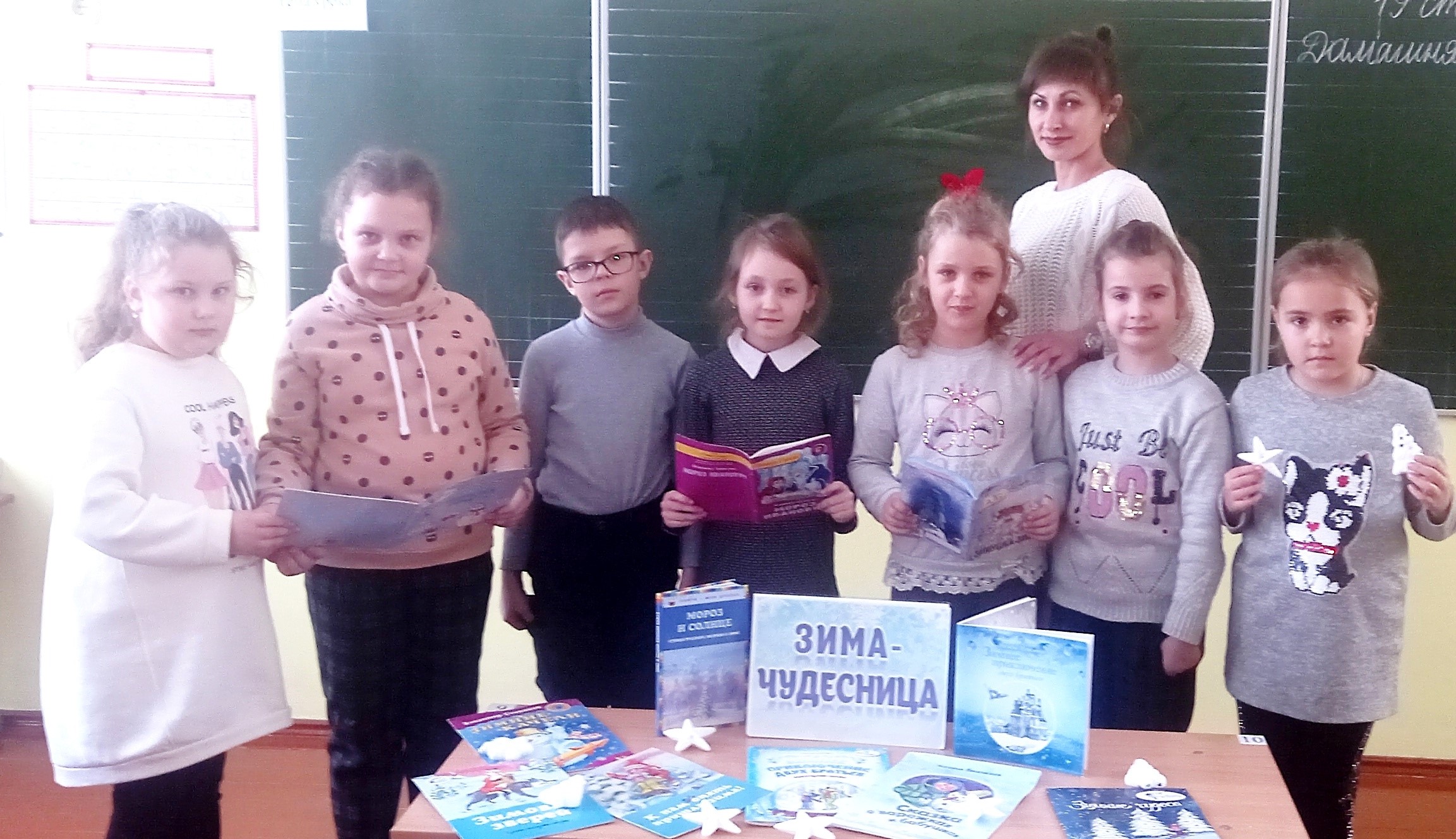 Сотрудники детского отдела центральной районной библиотеки для учащихся начальных классов средней школы №3 провели урок-вернисаж «Очарование зимнего пейзажа». Дети приняли участия в конкурсах: разгадывание загадок о зиме, изготовление снежинок, чтение стихов о зимнем времени года, в конкурсе красноречия. Игра «Снежный снайпер» показала меткость и выдержку ребят.