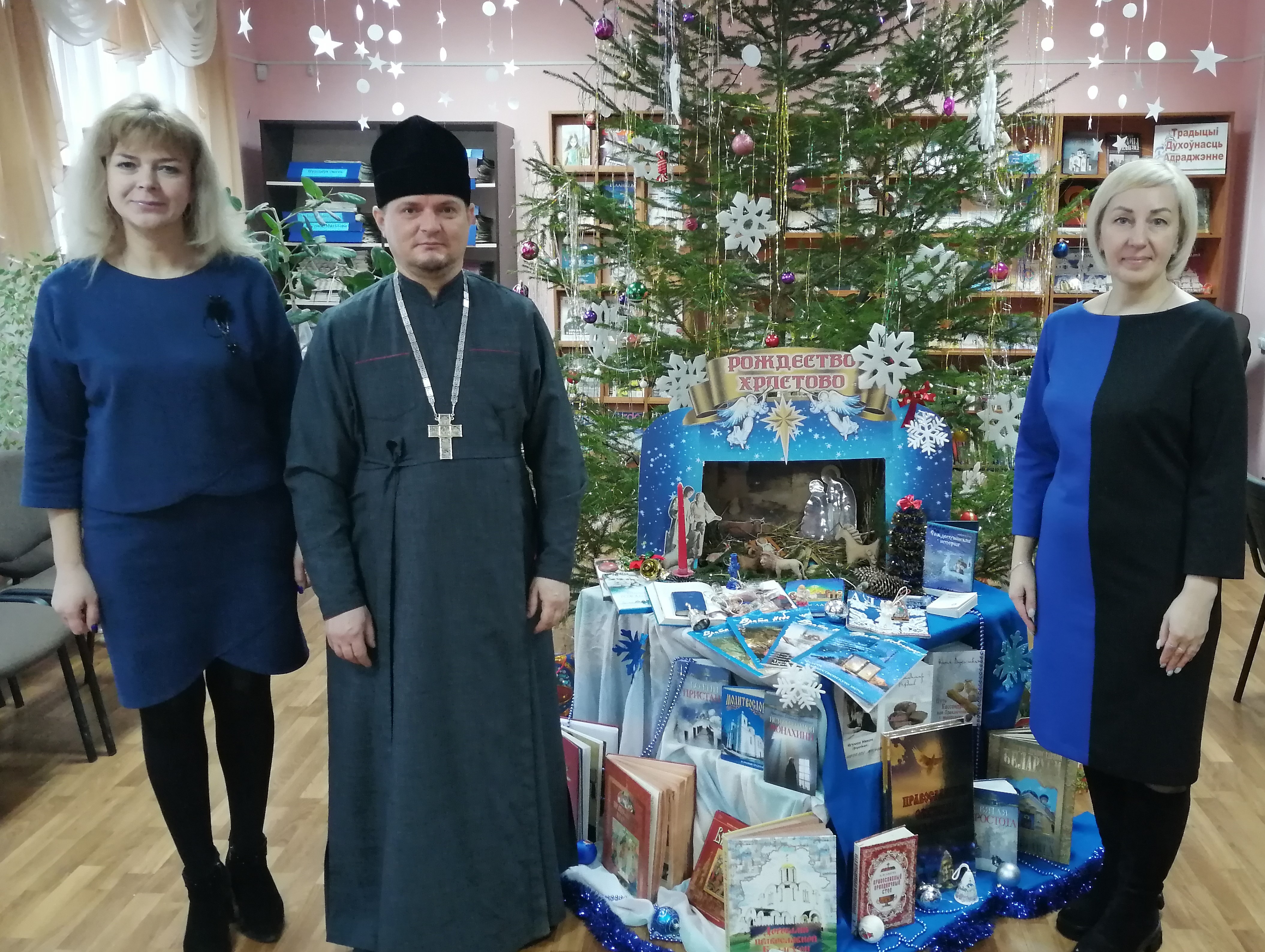 В читальном зале центральной районной библиотеки состоялась рождественская встреча с протоиереем Георгием Салобуто, настоятелем храма Казанской иконы Божией Матери села Прусино Костюковичского района. Он поздравил всех присутсвующих с наступающим Рождеством Христовым, пожелал здравия, благополучия, помощи Божией во всех благих делах и начинаниях, а также в самом важном деле - духовном воспитании подрастающего поколения.