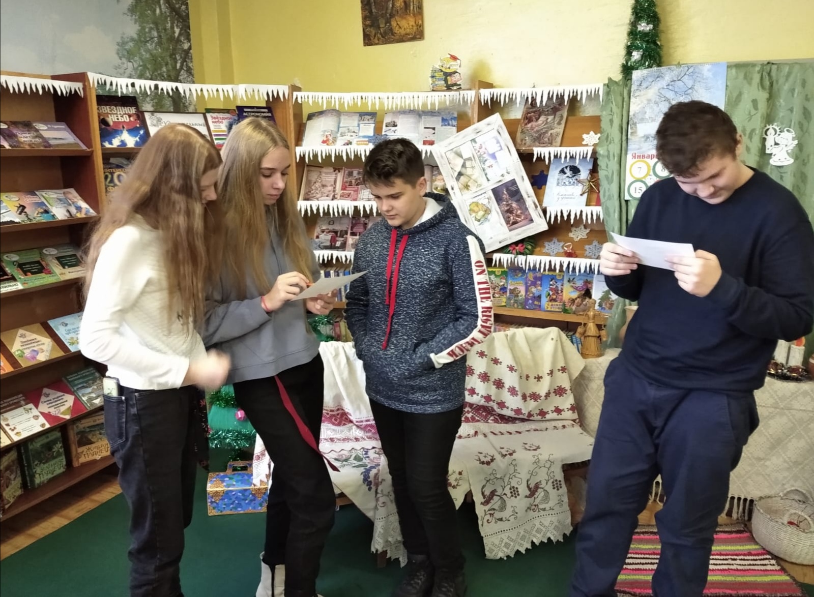 Для учащихся старших классов в городской библиотеке №1 прошли зимние посиделки «Листаем дни календаря: от Рождества до Федосеева дня». Ведущие рассказали о традициях празднования старого Нового года, Рождества Христова, о том, как эти дни встречали наши предки. Вместе с ряжеными героями ребята приняли активное участие в конкурсах и играх.