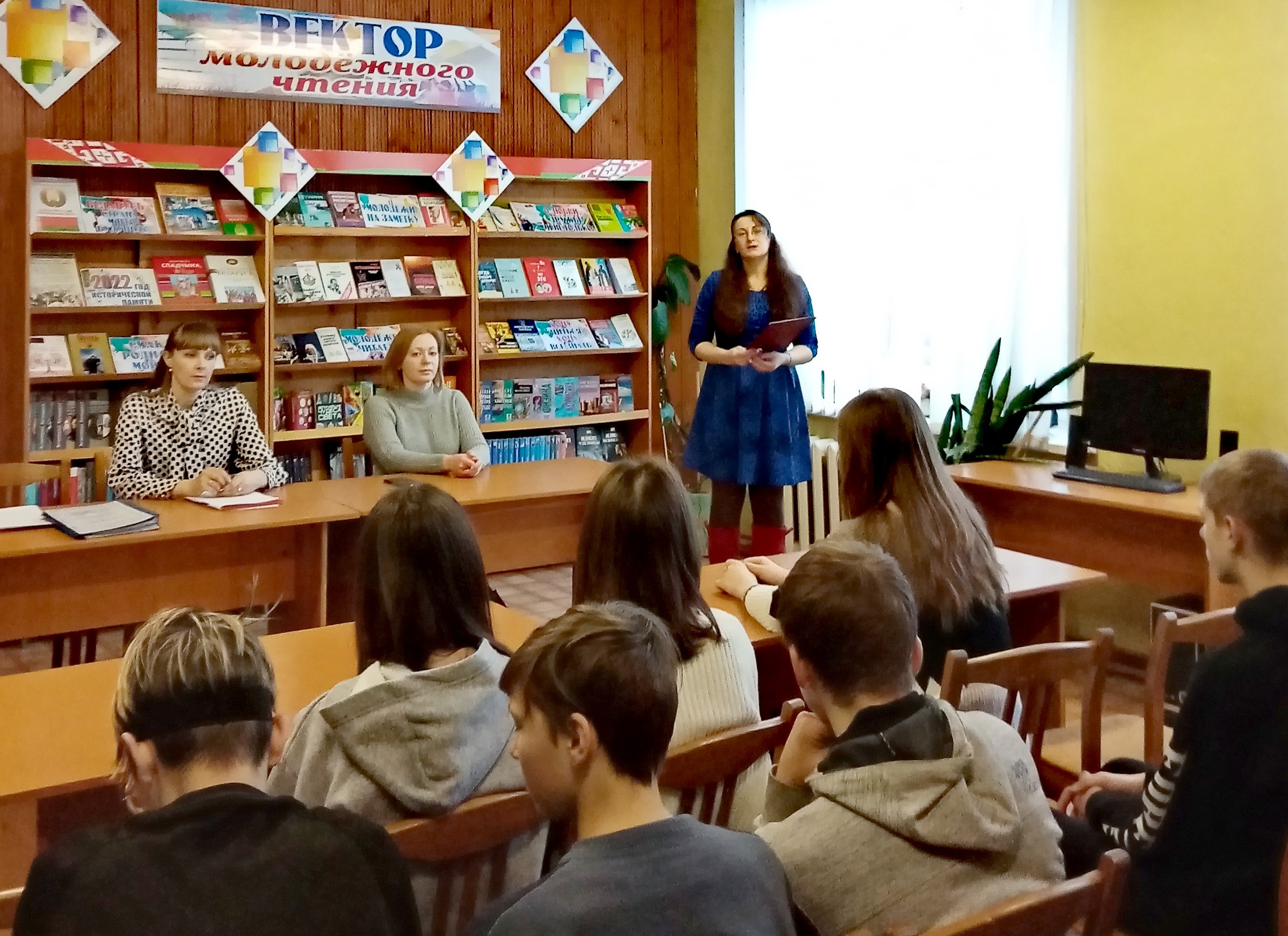 В Городской библиотеке №1 в рамках программы «Молодежь и библиотека: навстречу друг другу» состоялась презентация информационного центра «Вектор молодежного чтения». Гостями мероприятия стали первый секретарь РК ОО «БРСМ» Алеся Котова, учащиеся старших классов средней школы №4, члены клубов «Книголюб» и «Молодежный серпантин» Татьяна Пикун и Алина Елисеенко.