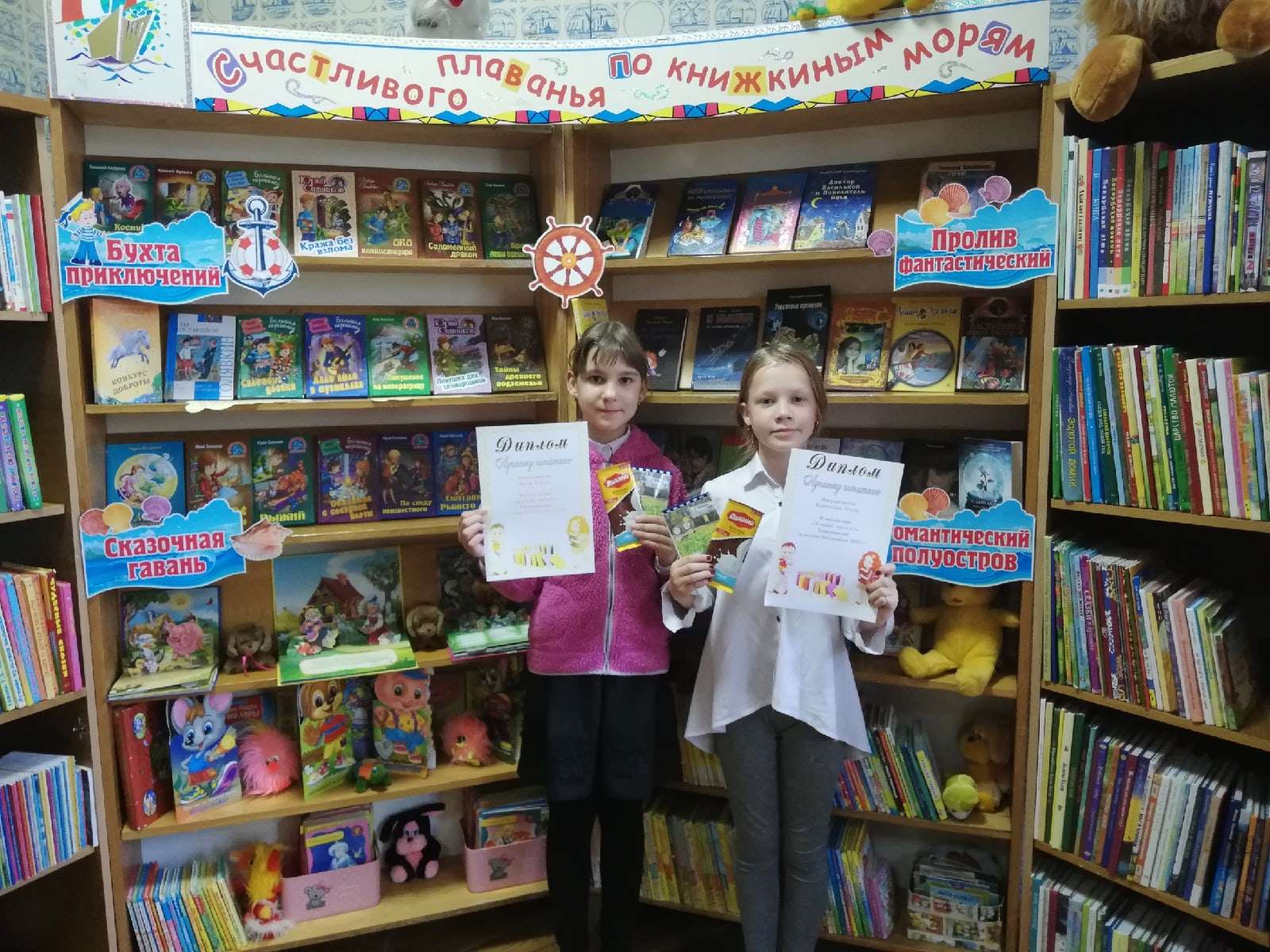 Сотрудники библиотеки подвели итоги уходящего года и поблагодарили своих лучших читателей за сотрудничество и преданность библиотеке. И провели награждение лучших читателей библиотеки. Среди детского читателя лучшими стали учащиеся 5-го класса Тимоновской средней школы – Коноплёва Ольга и Ярош Ольга. Юные читательницы получили дипломы и сладкие призы.