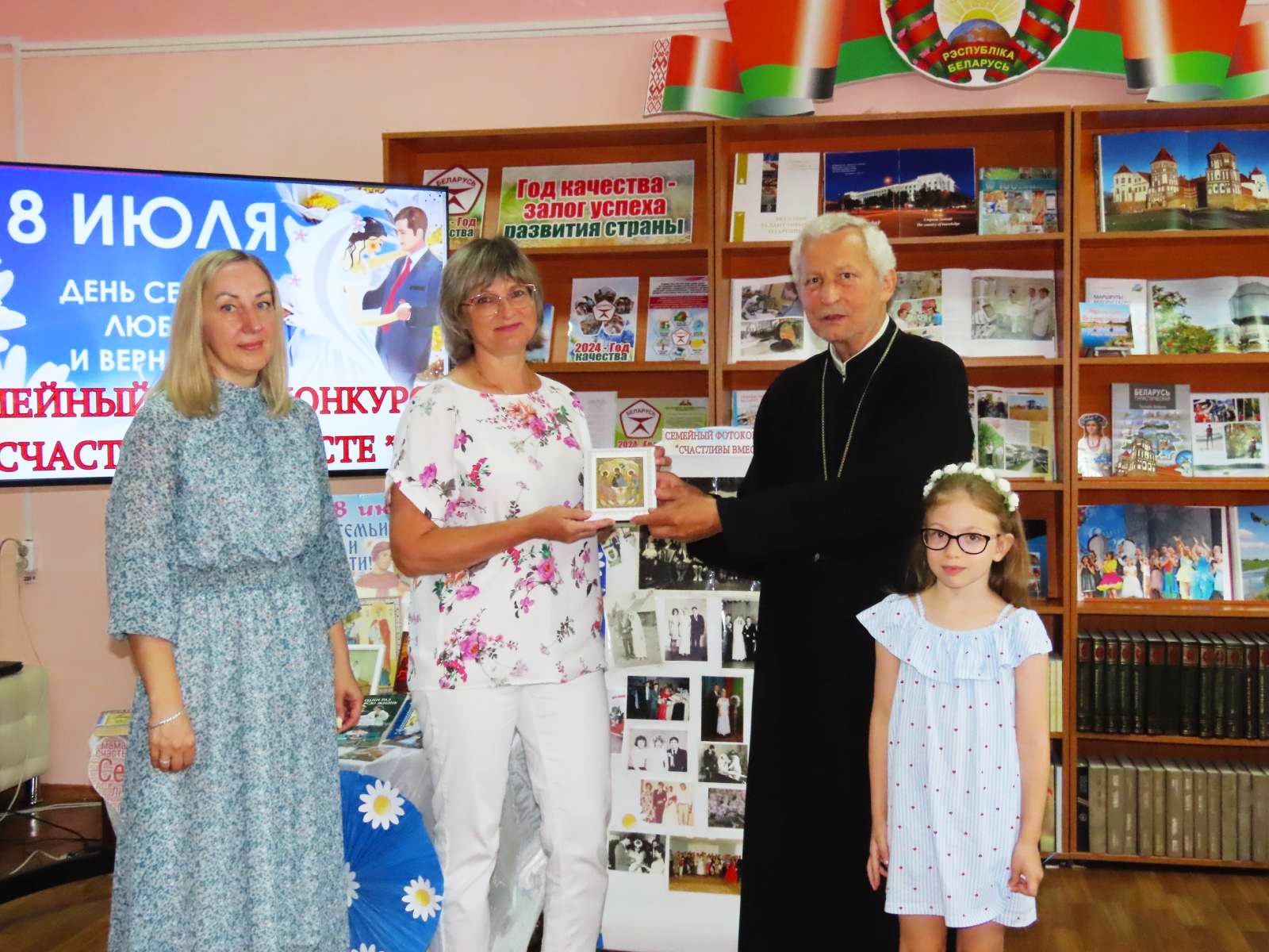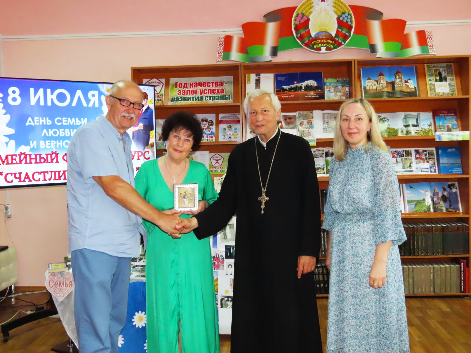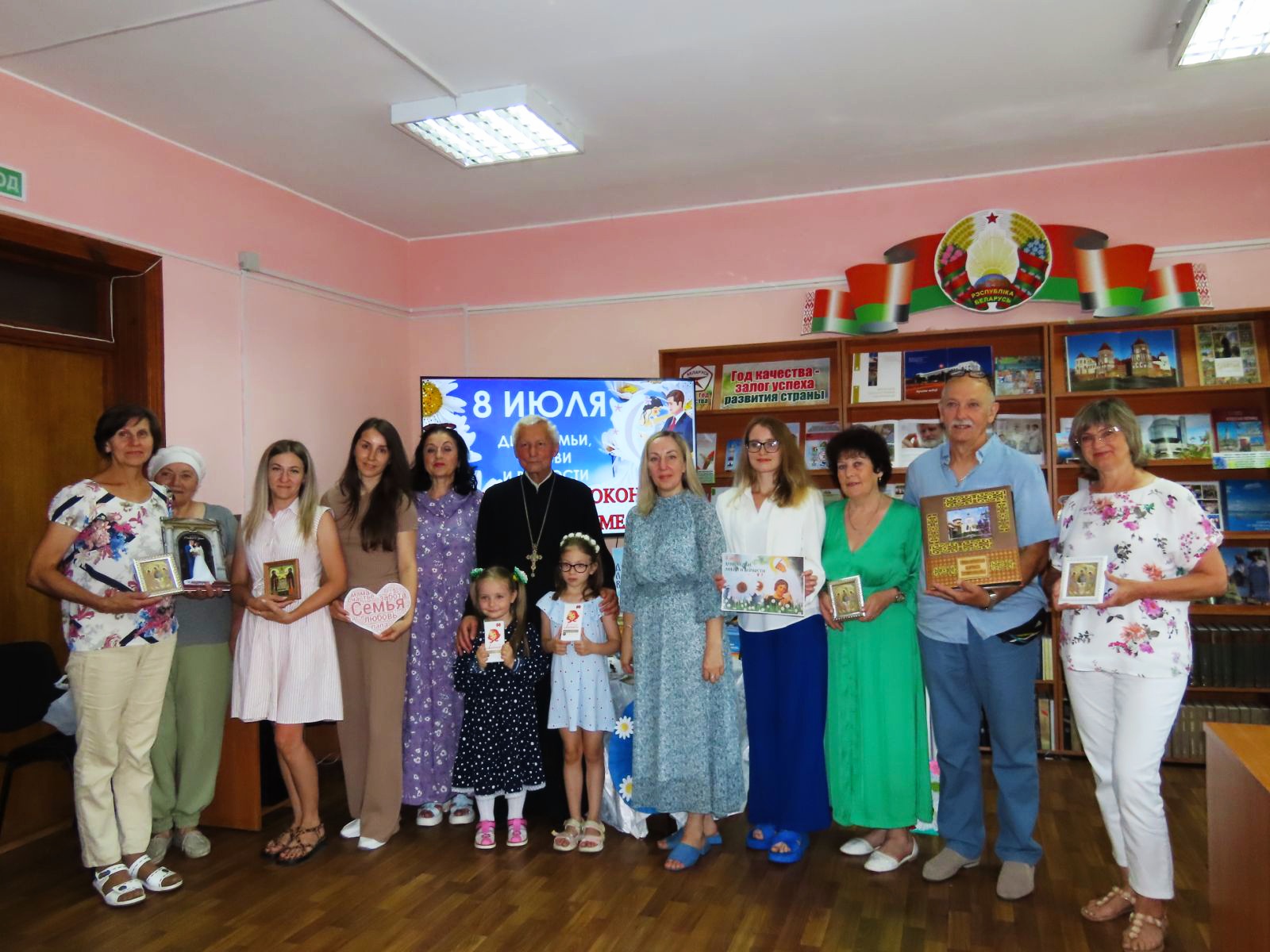 9 июля в центральной районной библиотеке состоялось подведение итогов с участием настоятеля Свято-Михайловского храма священноинока Иннокентия Смолякова. Он поздравил всех с праздником, пожелал мира и благополучия. Приятным моментом стало награждение семей-победителей. Все участники получили в дар иконы Пресвятой Троицы, наставление и благословение настоятеля Свято-Михайловского храма.