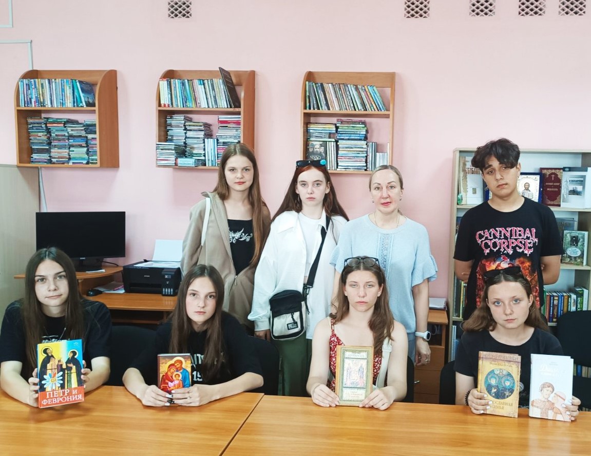 Ребята из трудового лагеря средней школы №1 стали участниками литературно-познавательного часа «Любви и веры образы». Ольга Максимович, заведующий отделом обслуживания и информации, познакомила школьников с историей возникновения праздника, рассказала о святых Петре и Февронии, которые издревле считались на Руси покровителями семьи и брака, узнали о главном символе праздника – ромашке.