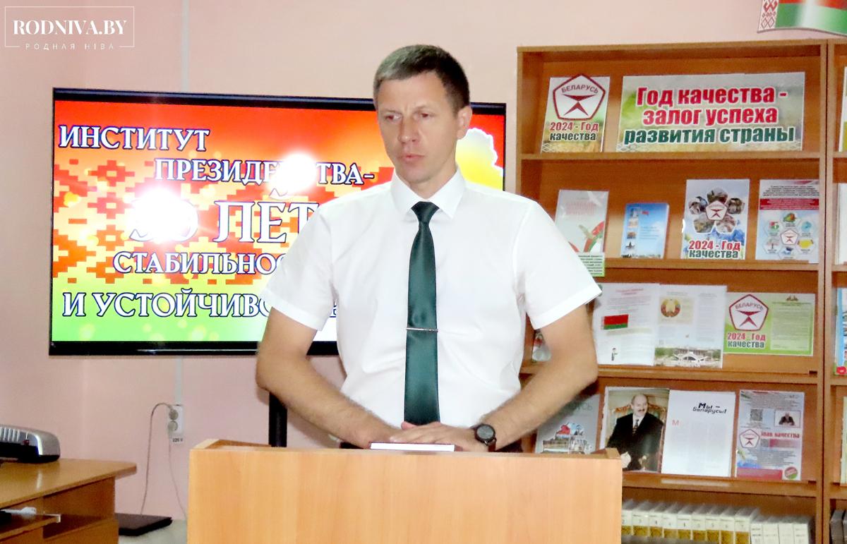 Круглый стол «Институт президентства: 30 лет стабильности и устойчивого развития» состоялся в центральной районной библиотеке. В качестве спикеров были приглашены начальник отдела идеологической работы и по делам молодежи Климовичского райисполкома Андрей Зенькович, председатель районного отделения Белорусской партии «Белая Русь» Елена Москалева, лектор РГОО «Знание», историк и политолог Петр Шутов. На встречу с учащимися Климовичского аграрного колледжа пришли также председатель районного объединения профсоюзов Алеся Котова и председатель районного совета ветеранов Валентина Цыганкова.