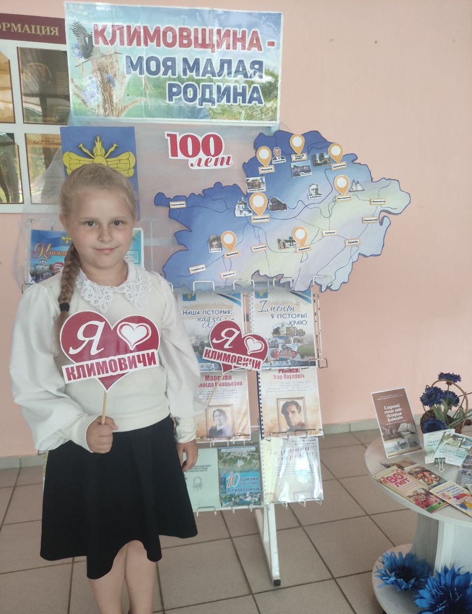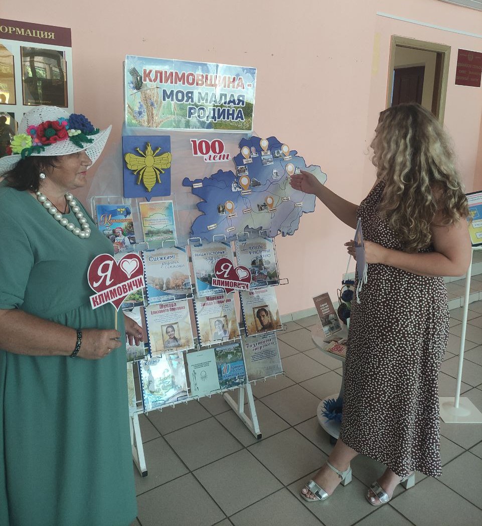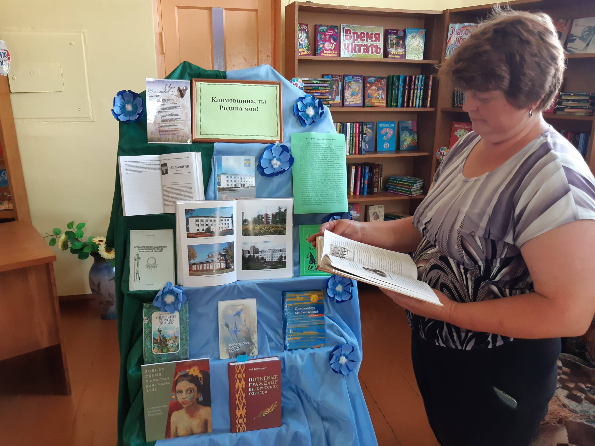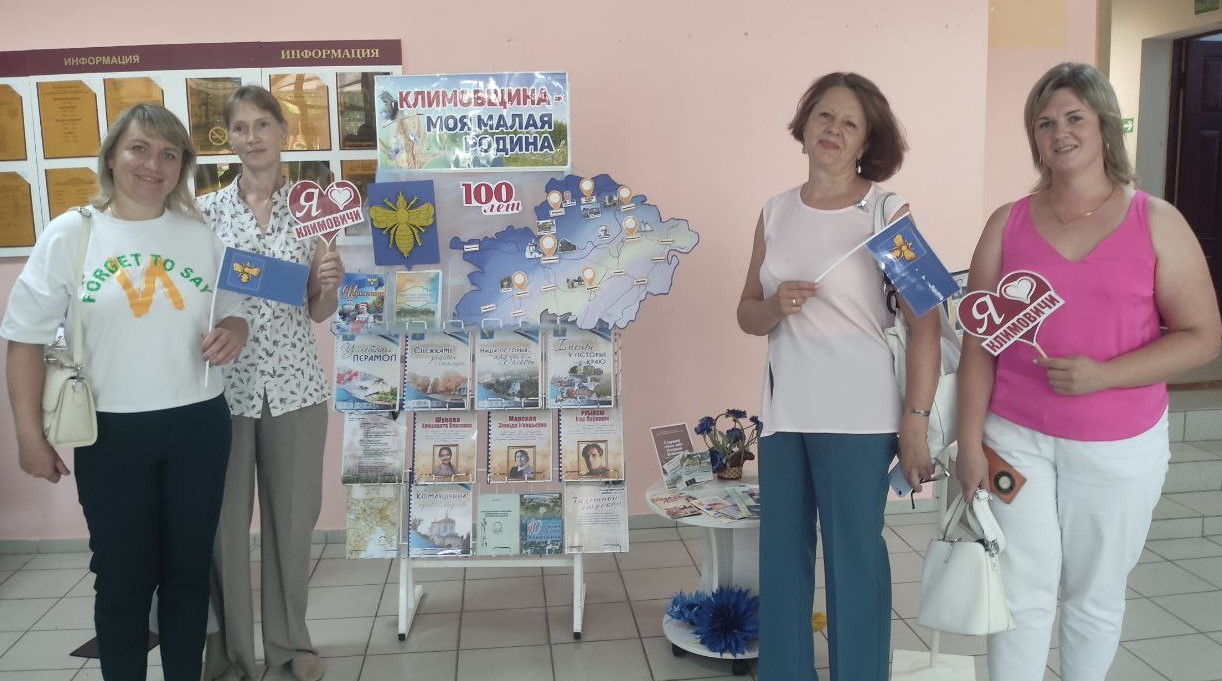 Сотрудники центральной районной библиотеки в рамках праздничного концерта «100 лет Климовичскому району» подготовили тематическую экспозицию «Климовщина - моя малая родина». Книги, тематические папки и альбомы, издательская продукция, посвященная истории становления района, развитию материальной и духовной культуры.