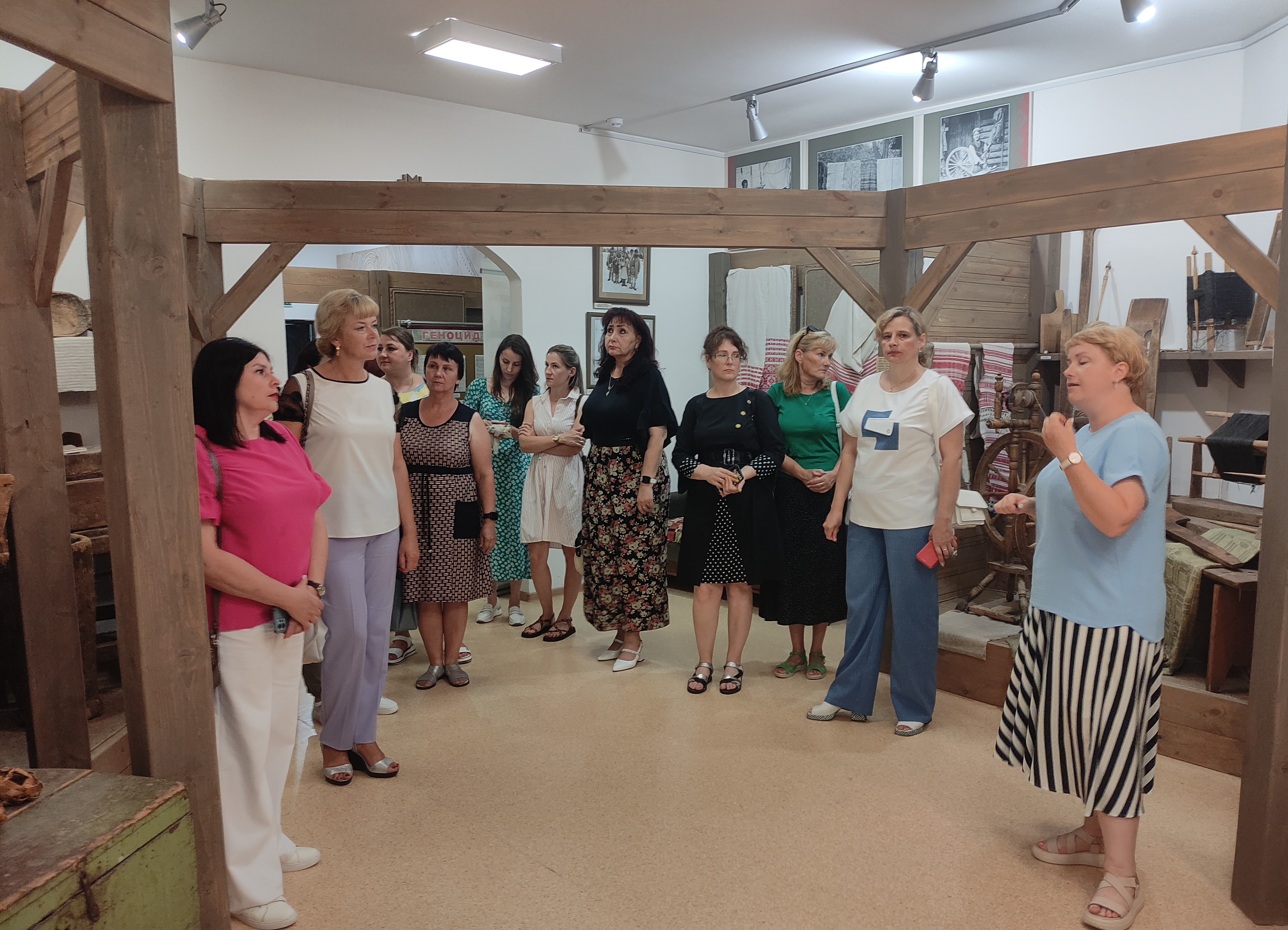 18 июля на базе ГУК «Дрибинская библиотечная сеть» состоялся выездной семинар «Краеведческая деятельность библиотек как основа сохранения исторической памяти и патриотического воспитания». Библиотекари Климовичской библиотечной сети посетили памятник архитектуры эпохи классицизма – Костёл святого Казимира в агр. Рясно, Спасо-Преображенскую церковь. В районном историко-этнографическом музее познакомились с уникальным промыслом Дрибинщины – шаповальством. Сотрудники учреждения организовали для библиотекарей мастер-класс по валянию валенок. Обзорная экскурсия по поселку, посещение памятных мест и возложение цветов на Алее Славы вошли в рабочую программу семинара.