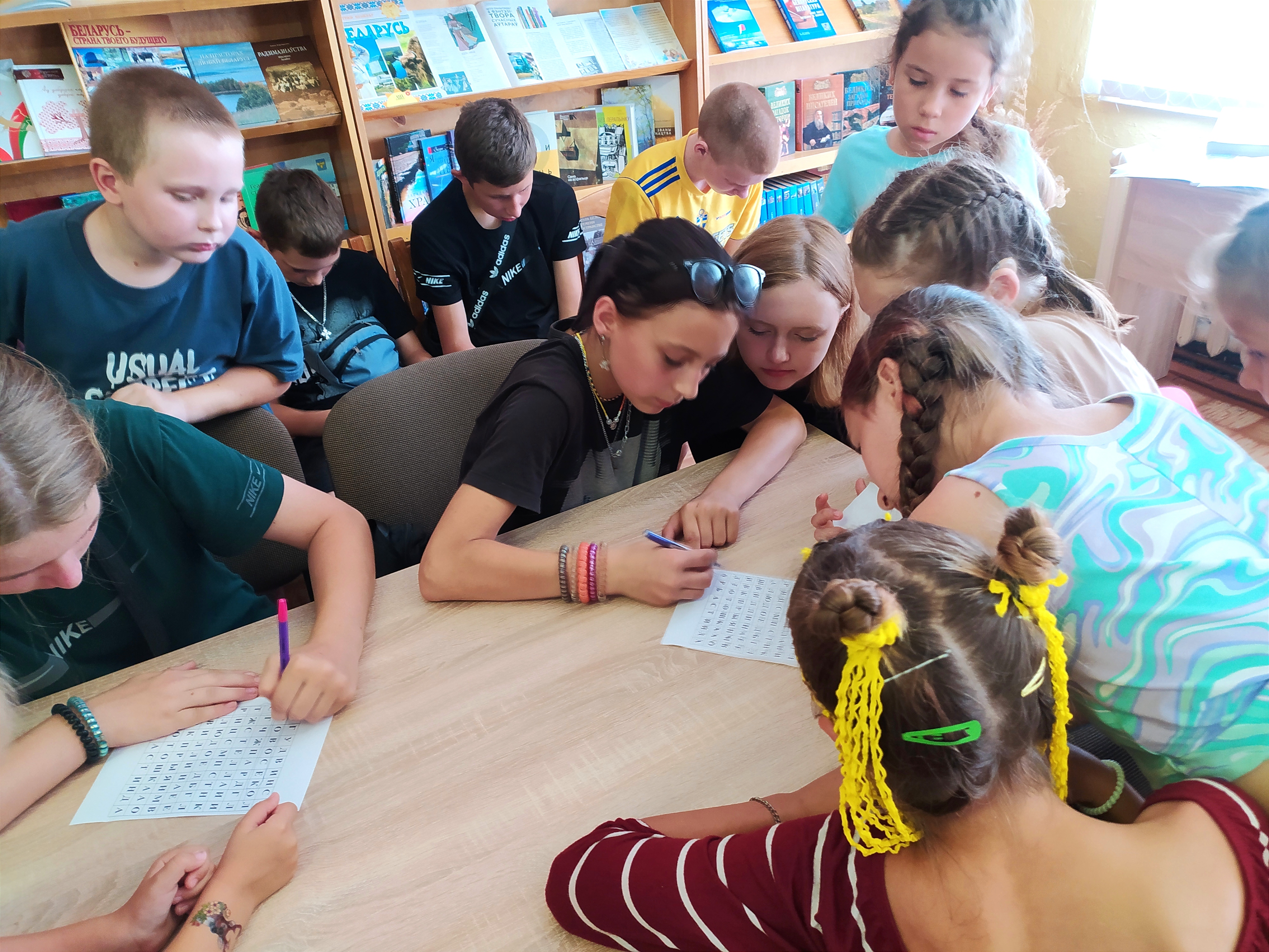 Сотрудники отдела по обслуживанию детского читателя центральной районной библиотеки провели открытое занятие «Я – беларус! Я ганаруся, што маю гэтае імя». Его участниками стали ребята, посещающие оздоровительный лагерь районной гимназии. Дети отвечали на вопросы литературных викторин, посоревновались в конкурсах и играх «Мужество», «Мой край», «Найди звезду» и «Бренды городов».
