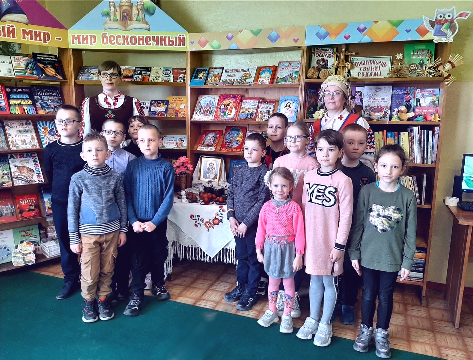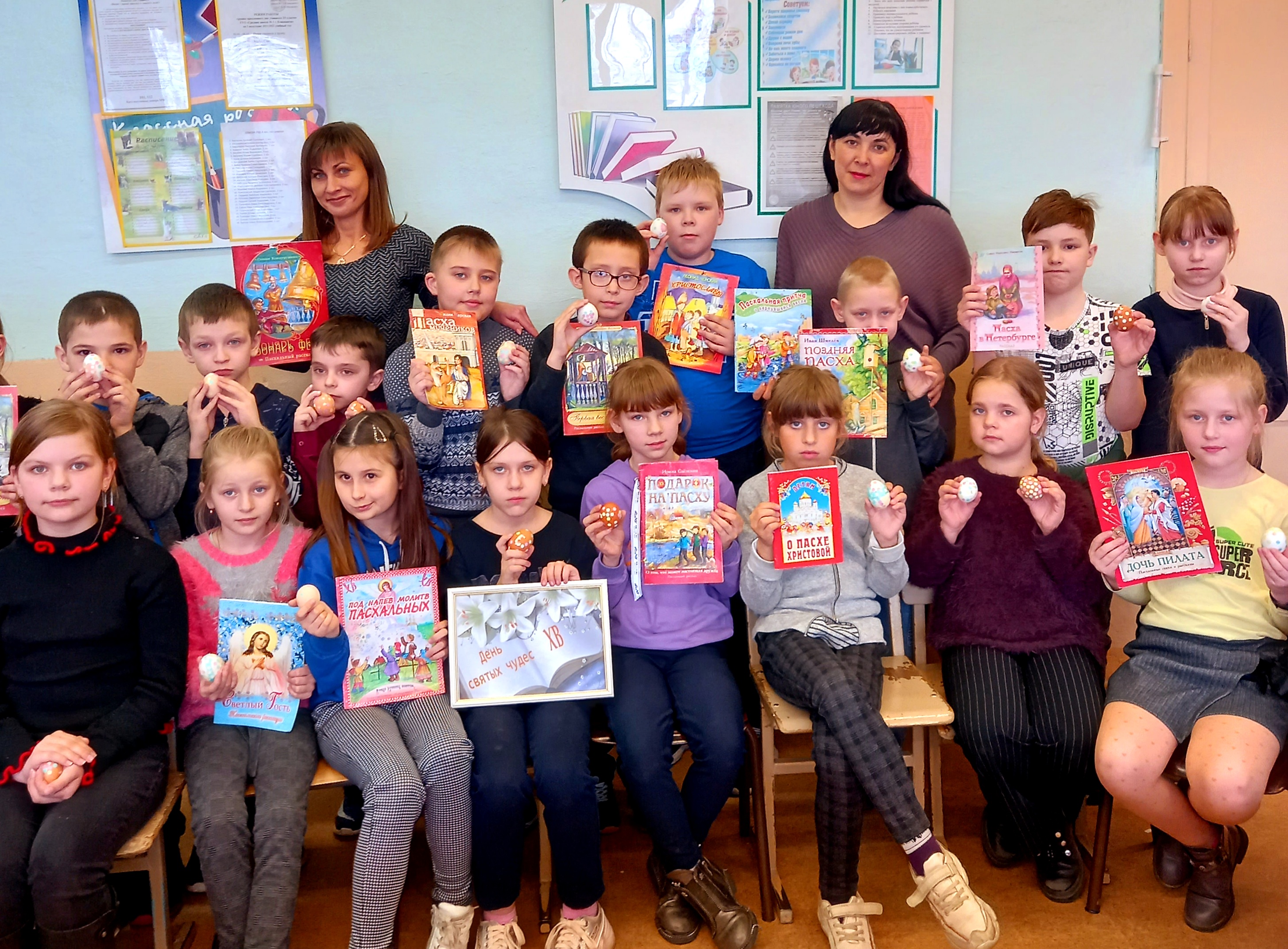 Сотрудники отдела по обслуживанию детского читателя центральной районной библиотеки для учащихся начальных классов средней школы №1 провели час духовности «Пасхальный вечер». Дети познакомились с народными поверьями и пасхальными традициями, послушали легенду о вербном дереве. Библиотекарь рассказала детям, что традиционный подарок на Пасху – крашеное яйцо, как символ зарождения новой жизни. Ребята отвечали на вопросы пасхальной викторины, читали стихи и рассказы И.С. Шмелева, А.С. Пушкина, Г.С. Петрова и другие.