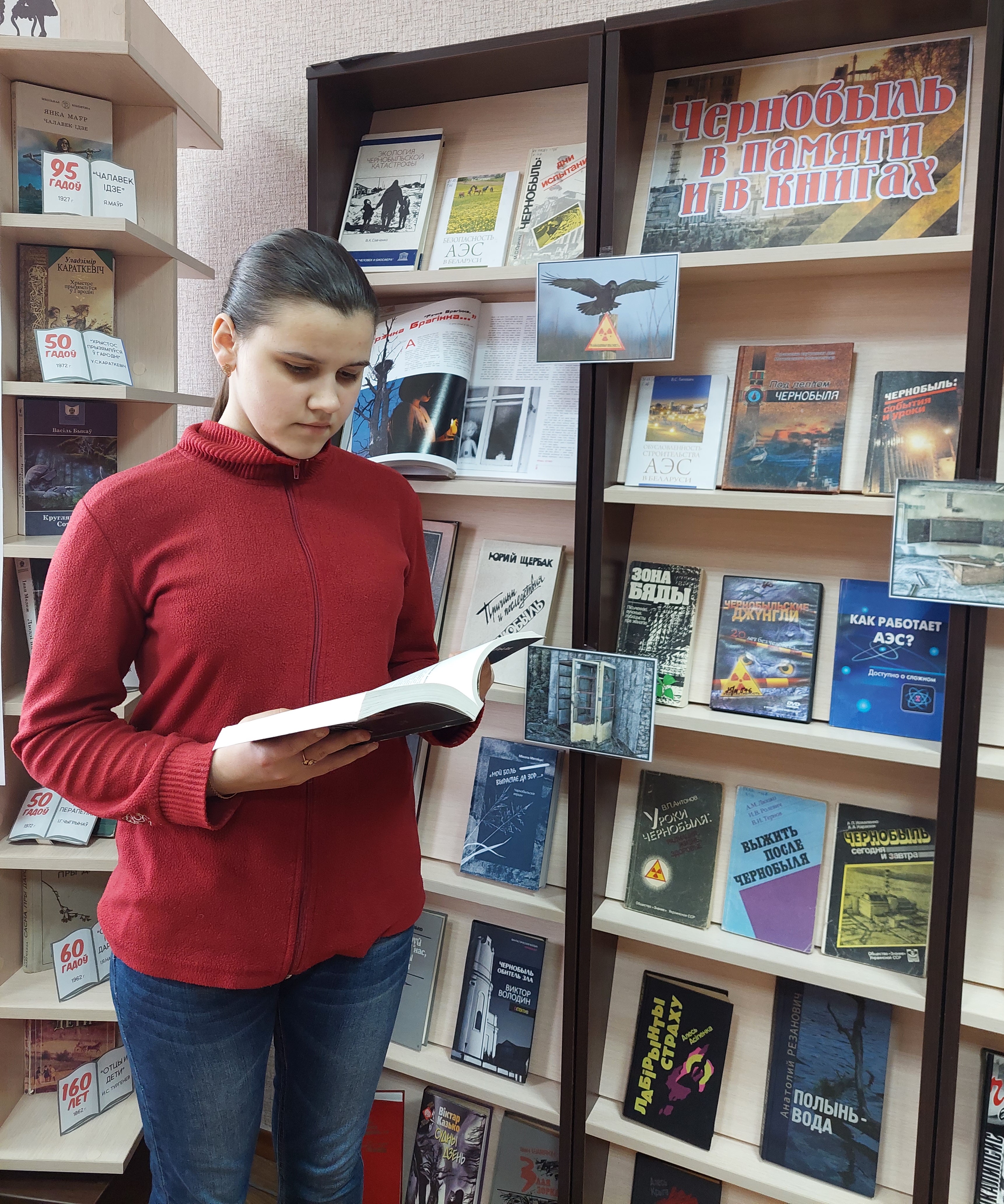 В память о тех трагических днях, о героях Чернобыля расскажет книжная выставка, оформленная в центральной районной библиотеке им. И. Пехтерева «Чернобыль: события и факты». На ней представлены документальные и художественные произведения, научные сборники, монографии и другие издания: «Под пеплом Чернобыля: воспоминания ветеранов и сотрудников внутренних дел Могилевской области - участников ликвидации и последствий аварии на ЧАЭС» М. А. Рыськова, «Ядерный загар», «Чернобыльская хроника» Г. Медведева, «Полынь-вода» А. И. Резановича, «Причины и последствия» Ю. Н. Щербака, «Черное безмолвие» К. Кудряшова и другие.