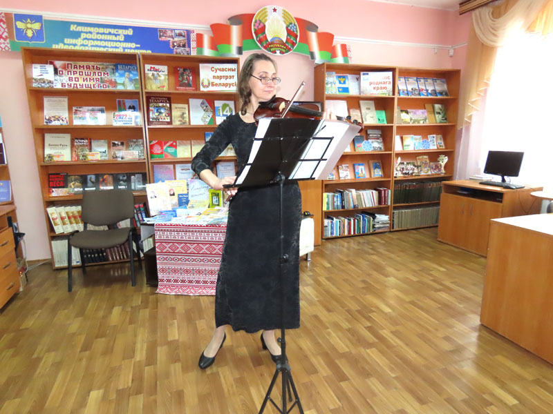 Свои стихи на этой встрече читали и климовчане — Галина Цыганкова и молодая поэтесса Анна Жилинская. А музыкальные номера игрой на скрипке подарила преподаватель Климовичской детской школы искусств Татьяна Смирнова.
