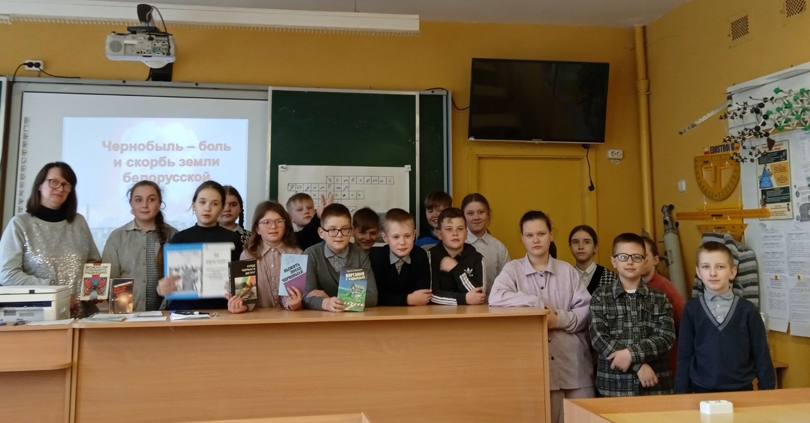 Сотрудники городской библиотеки №2 для учащихся 5 классов районной гимназии провели кинолекторий «Чернобыль – боль и скорбь земли белорусской». Библиотекарь рассказала детям о событиях тех далеких дней, о причинах трагедии, а также о героическом подвиге ликвидаторов аварии. Ребята посмотрели фильм «Чернобыльская катастрофа. Как это было», снятый по документальным доказательствам и показаниям очевидцев. В завершении мероприятия ребята разгадывали кроссворд.
