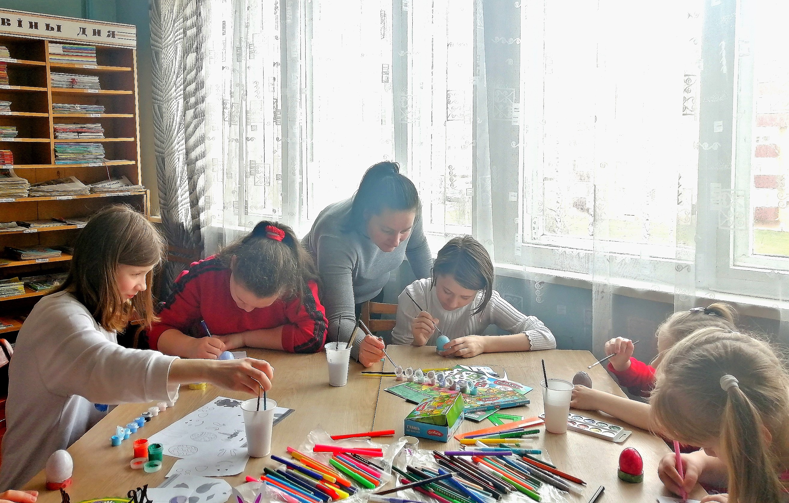 В городской библиотеке №2 прошел карнавал идей «Пасхальный сувенир». Заведующий библиотекой рассказала ребятам о традиции празднования Пасхи, об истории светлого праздника, об играх в этот день. Дети приняли активное участие в мастер-классе по раскраске яиц. Они познакомились с разными техниками декорирования яиц (расписные – «писанки», а крашенные – «крашенки»), где каждый смог проявить свои идеи и фантазию.
