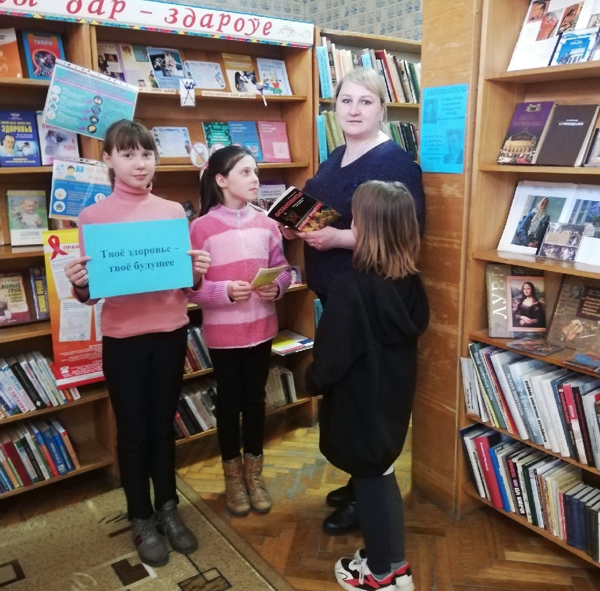 Сотрудники Тимоновской сельской библиотеки провели день информации «Твоё здоровье – твоё будущее». Жителям агрогородка Тимоново библиотекари раздавали тематические буклеты и брошюры о здоровом образе жизни, о том, как оставаться здоровым, молодым, красивым и сильным. Юным читателям библиотеки предложили назвать самый сильный аргумент в пользу здорового образа жизни, а также самим закончить фразу «Я выбираю здоровый образ жизни потому, что…». Большинство детей считают, чтобы жить долго и не болеть, нужно заниматься спортом, соблюдать гигиену, отказаться от вредных привычек и, конечно же, правильно питаться.
