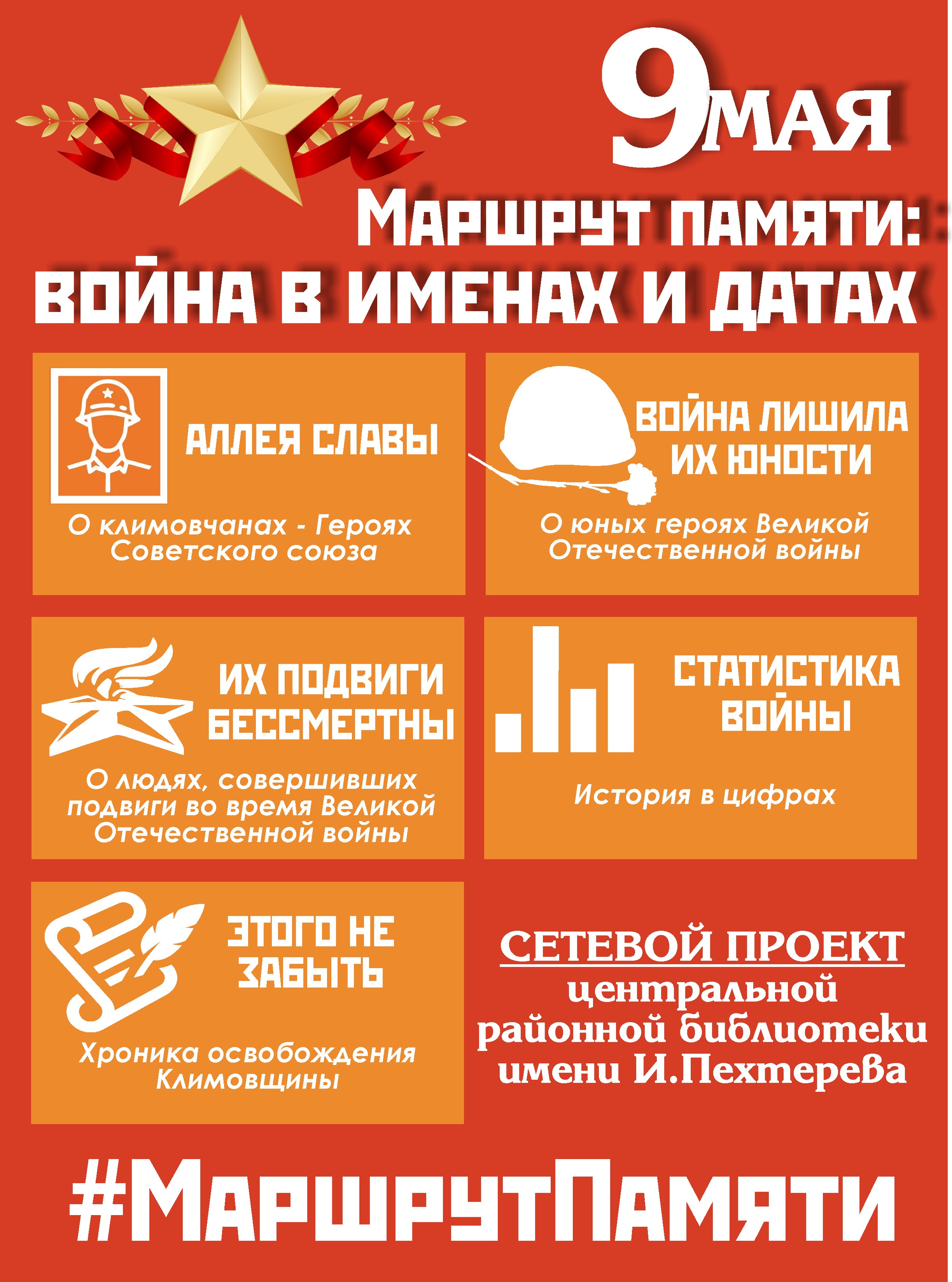 В Год исторической памяти центральная районная библиотека имени И.Пехтерева запускает сетевой проект ко Дню Победы «Маршрут памяти: война в именах и датах».