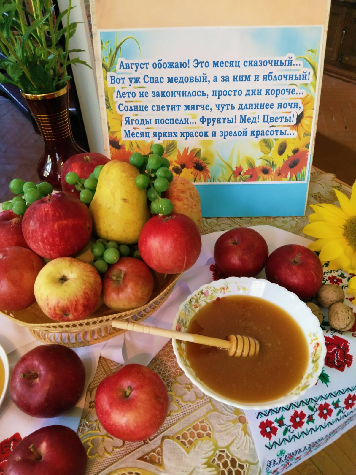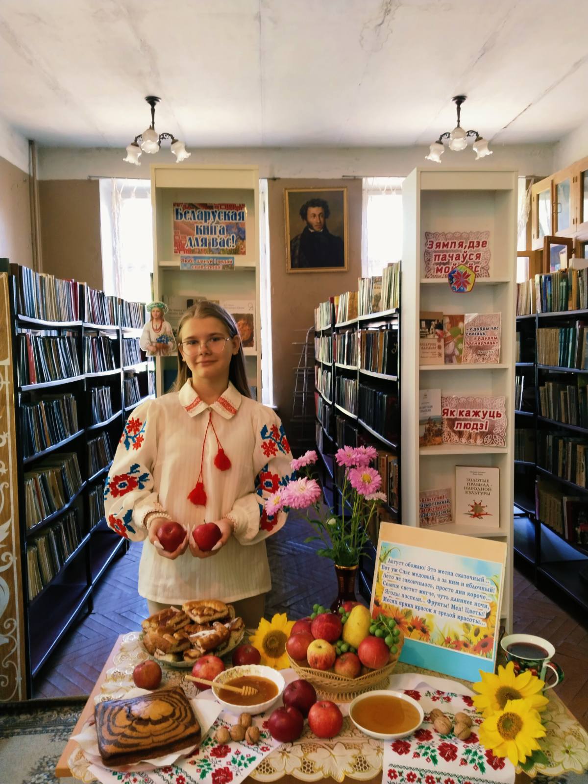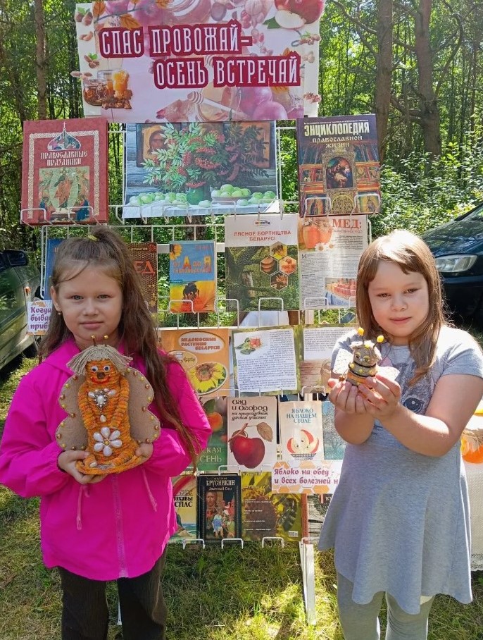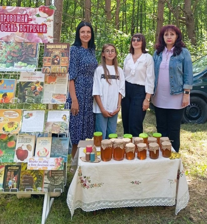 Сотрудники центральной районной библиотеки приняли участие в мероприятии, представив книжно-иллюстративную выставку «Спасы провожай – осень встречай». На выставке были представлены книги и журналы об истории возникновения праздников, о традициях их празднования в православии, а также статьи о полезных свойствах меда, яблок и орехов, народных приметах августа, рецепты приготовления кулинарных блюд и заготовок на зиму и многое другое.