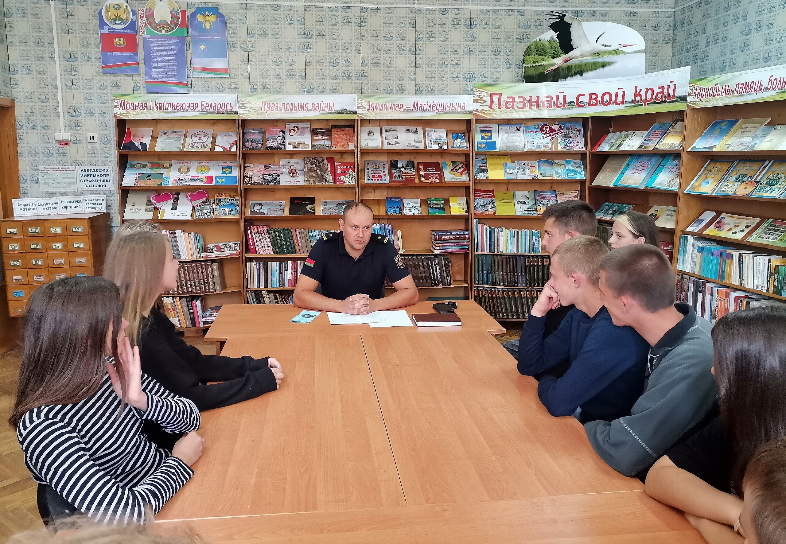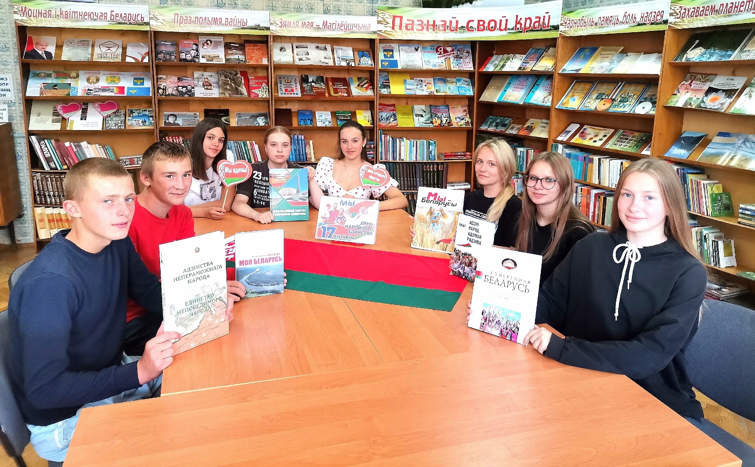 В ходе беседы учащиеся познакомились с интересными фактами нашей страны, её историческими событиями — воссоединением Западной Беларуси с БССР. Молодые люди расширили свои знания о культуре и традициях белорусского народа, его героическом прошлом, борьбе за независимость своей страны. Знакомясь с литературой и информационными материалами, представленными на выставке «Моцная і квітнеючая Беларусь» учащиеся убедились в том, что именно через уважение к прошлому, через преемственность поколений формируется ответственность за настоящее и будущее нашей Родины.
