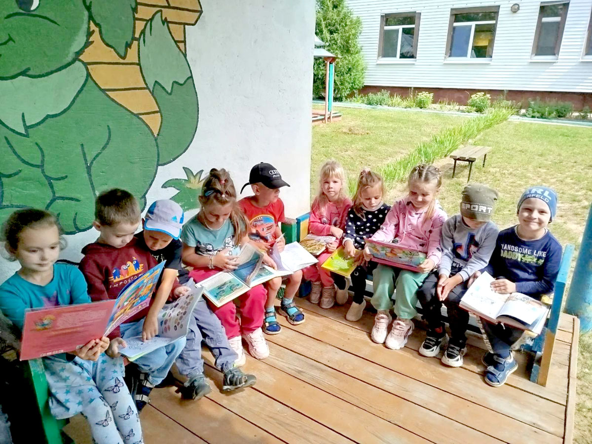 Сотрудники библиотеки агрогородка Тимоново организовали для воспитанников детского сада «Журавушка» литературные посиделки «С книгой на скамейке». На детской площадке в ясный солнечный день мальчики и девочки увлекательно и интересно провели время на свежем воздухе с любимыми книгами и журналами. Дети дружно и активно приняли участие в литературной викторине «Узнай сказку по описанию», познавательной викторине «В стране литературных героев», конкурсе пословиц и поговорок о книге и чтении.