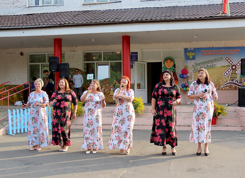 Хорошее настроение на празднике дарили художественные коллективы районного Центра культуры и участники из соседних Костюковичского и Хотимского районов. Всех радушно встречали роднянцы и, конечно же, семейно-родственный коллектив «Радня» местного Дома культуры. Библиотекарь Елена Осипенко также является участницей знаменитого коллектива «Радня».