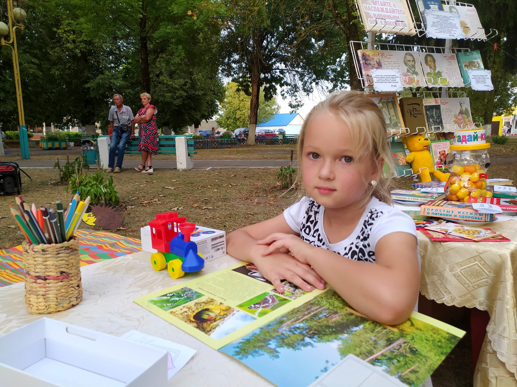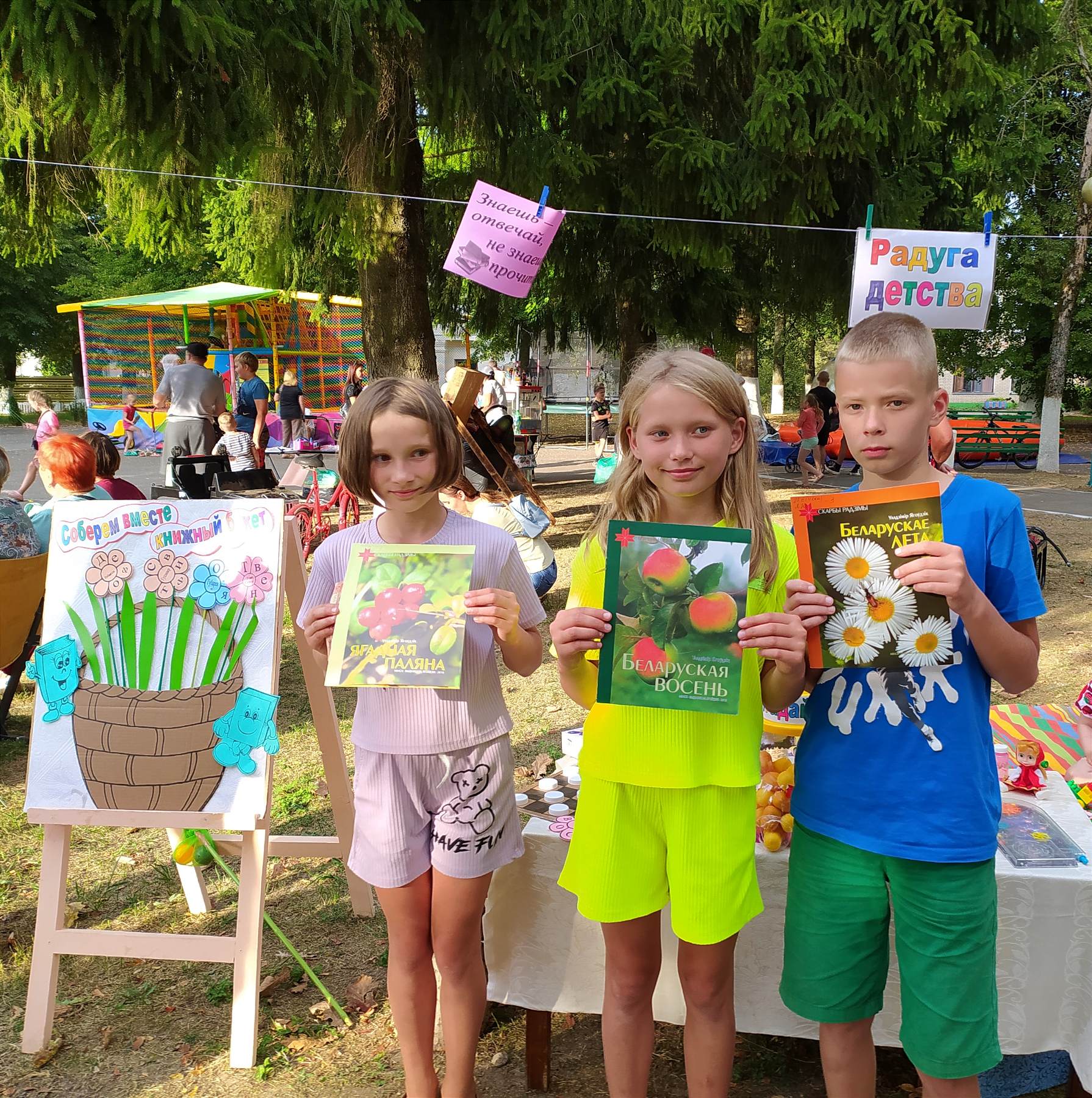 Сотрудники городской библиотеки № 1 организовали для гостей праздника и своих юных читателей интерактивную библиоплощадку. Здесь для ребят работала не только литературная выставка «Фейерверк детских книг», но и каждый смог принять участие в акции «Соберём вместе книжный букет», поиграть в различные подвижные и настольные игры. Такие мероприятия вдохновляют детей на чтение и совместные занятия, а игры добавляют веселья и активности.