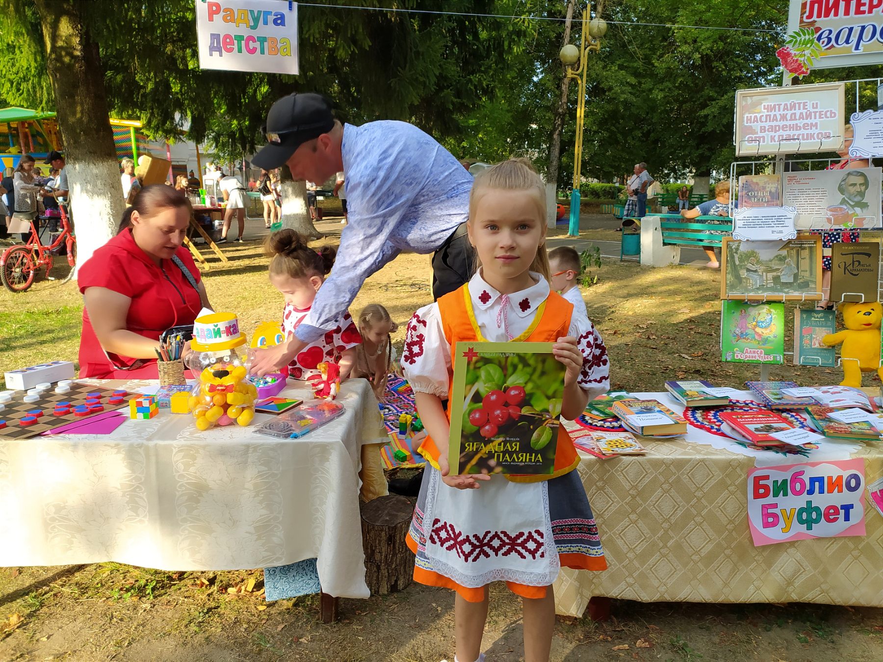 31 августа, в агрогородке Тимоново, прошел праздник варенья «Радуга вкусов", организованный Тимоновским сельским домом культуры. Сотрудники Тимоновской сельской библиотеки совместно с работниками городской библиотеки №1 организовали литературно-игровую площадку «Радуга детства», где каждый желающий мог познакомиться с литературой представленной на выставке «Литературное варенье», принять участие в беспроигрышной викторине, поиграть в настольные игры, а также отдохнуть вместе с детками на игровой лужайке.