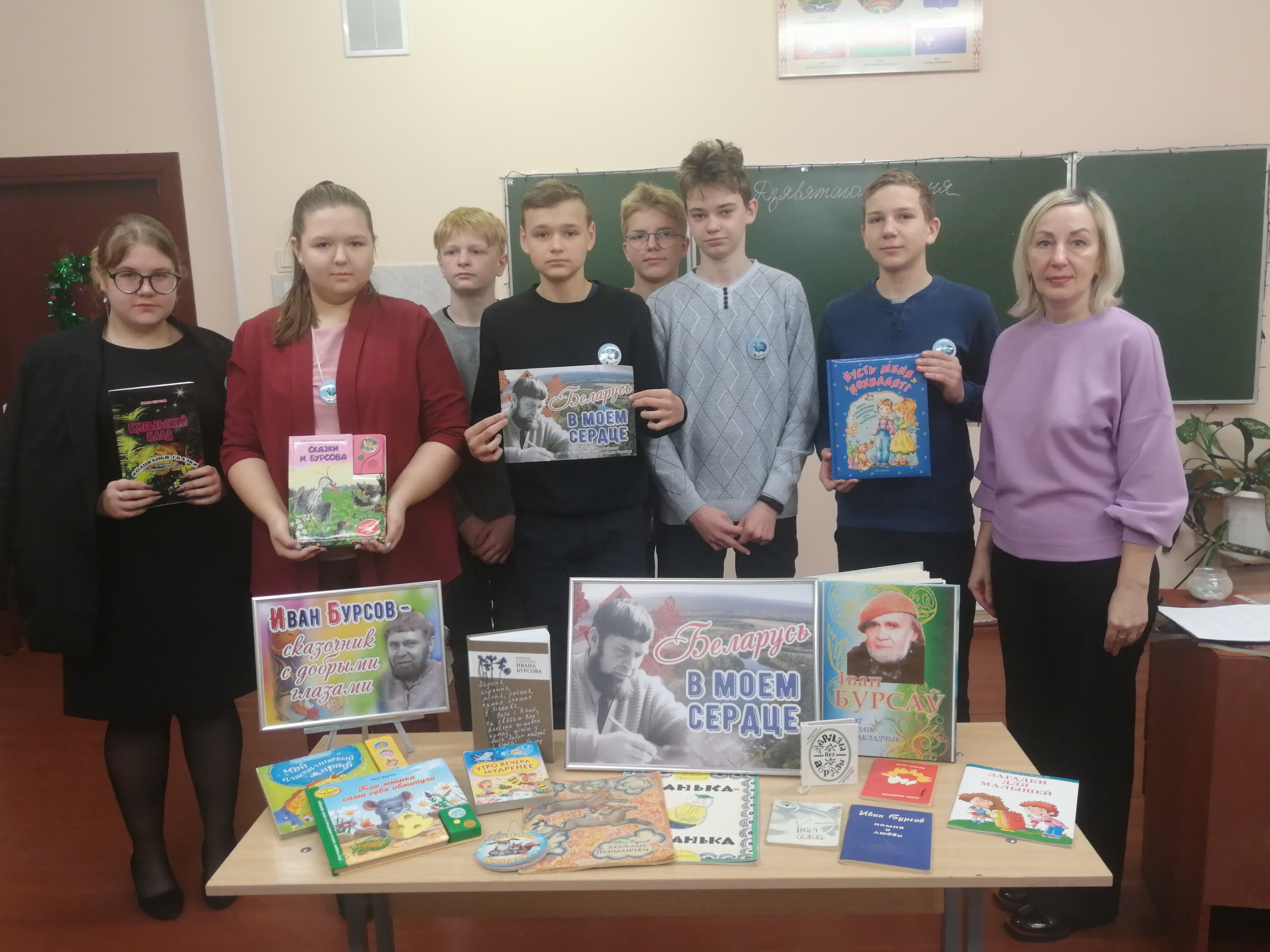 Сотрудники центральной районной библиотеки для учащихся средней школы№1, №3 и районной гимназии подготовили литературную визитку «Добрые книги Ивана Бурсова». Ребята познакомились с жизнью и творчеством нашего земляка – известного писателя Ивана Бурсова. Иван Терентьевич родился 19 декабря 1927 года в г.Климовичи в семье военнослужащего. С 1965 года жил в Москве, но душой и сердцем всегда был рядом со своей маленькой родиной.