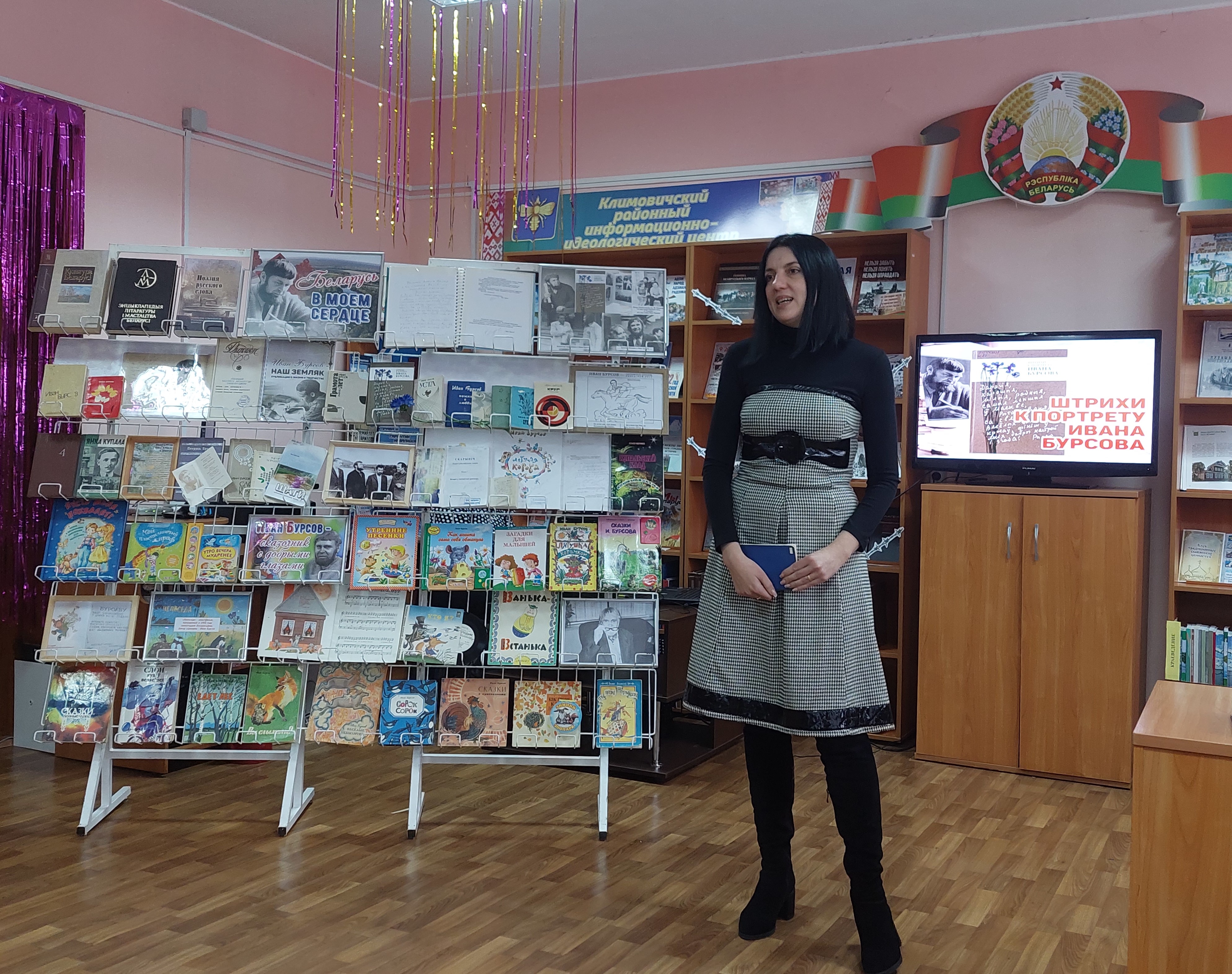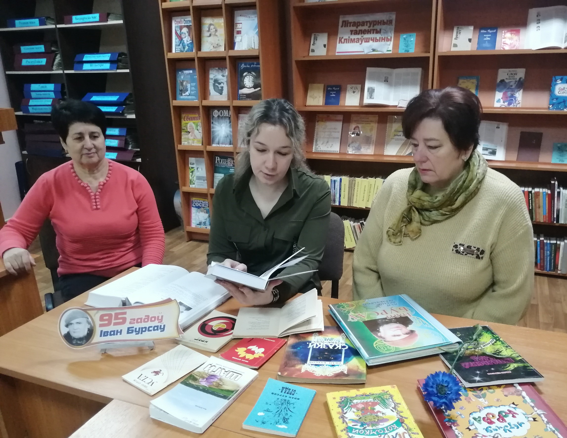 О творческом сотрудничестве с поэтом-земляком рассказала директор учреждения Татьяна Доменикан. Климовичская поэтесса Галина Цыганкова поделилась впечатлениями от знакомства с творчеством талантливого земляка. Посмотрев отрывок из мультфильма «Непоседа» по сценарию Ивана Бурсова, присутствующие окунулись в атмосферу детства. Звучали замечательные стихи поэта для детей в исполнении учащихся средней школы №3. Участники мероприятия прикоснулись к творчеству поэта, узнали интересные факты из биографии Ивана Бурсова. Благодаря труду Тамары Овсянниковой у климовчан появилась уникальная возможность познакомиться с творческим наследием известного земляка. Книга «Штрихи к портрету Ивана Бурсова» займёт почетное место в краеведческом фонде библиотеки.