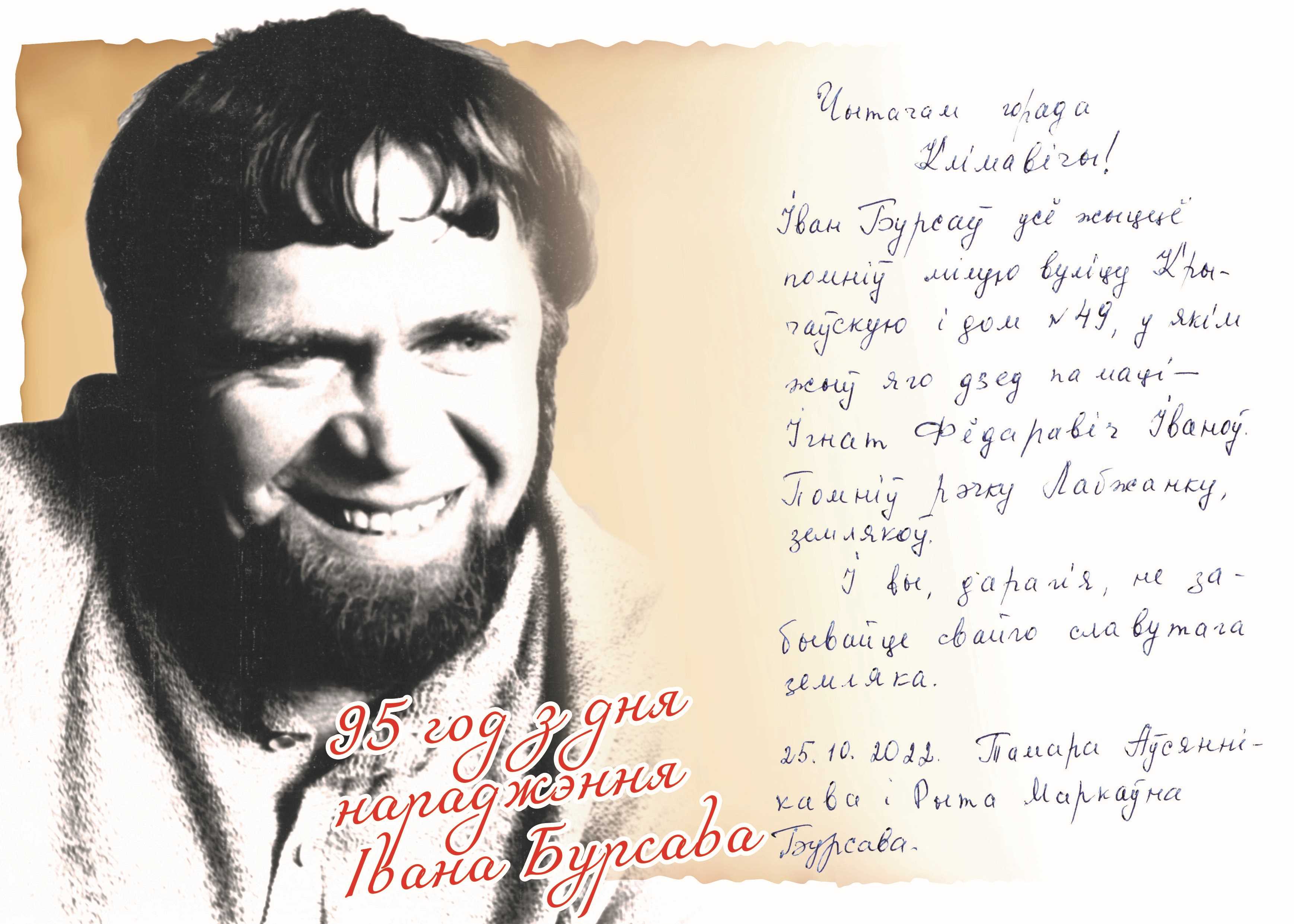 Сёння, у год юбілею Івана Бурсава, немагчыма не нагадаць чытачу пра творчасць нашага славутага земляка і яго ўнікальныя выданні, якія захоўваюцца ў бібліятэках раёна. Іван Цярэнцьевіч нарадзіўся ў горадзе Клімавічы ў сям’і ваеннаслужачага. Ён рана пакінуў Клімаўшчыну, але ніколі не забываўся на малую радзіму. Пра гэта сведчаць яго эсэ «Мой Янка Купала» і «Фрэска», дзе ён успамінае школьныя гады, расказвае пра свайго дзядулю, які жыў ў Клімавічах.