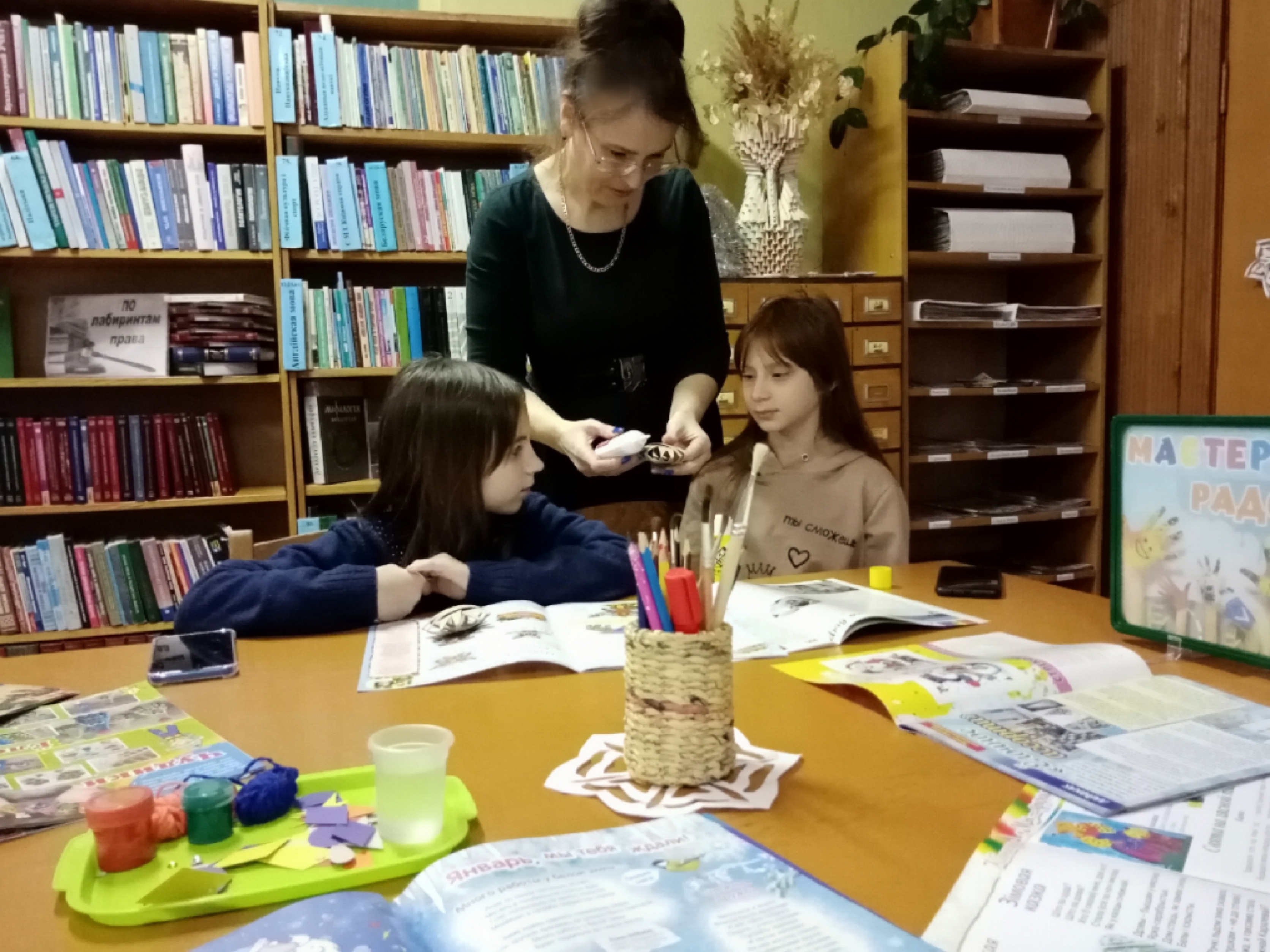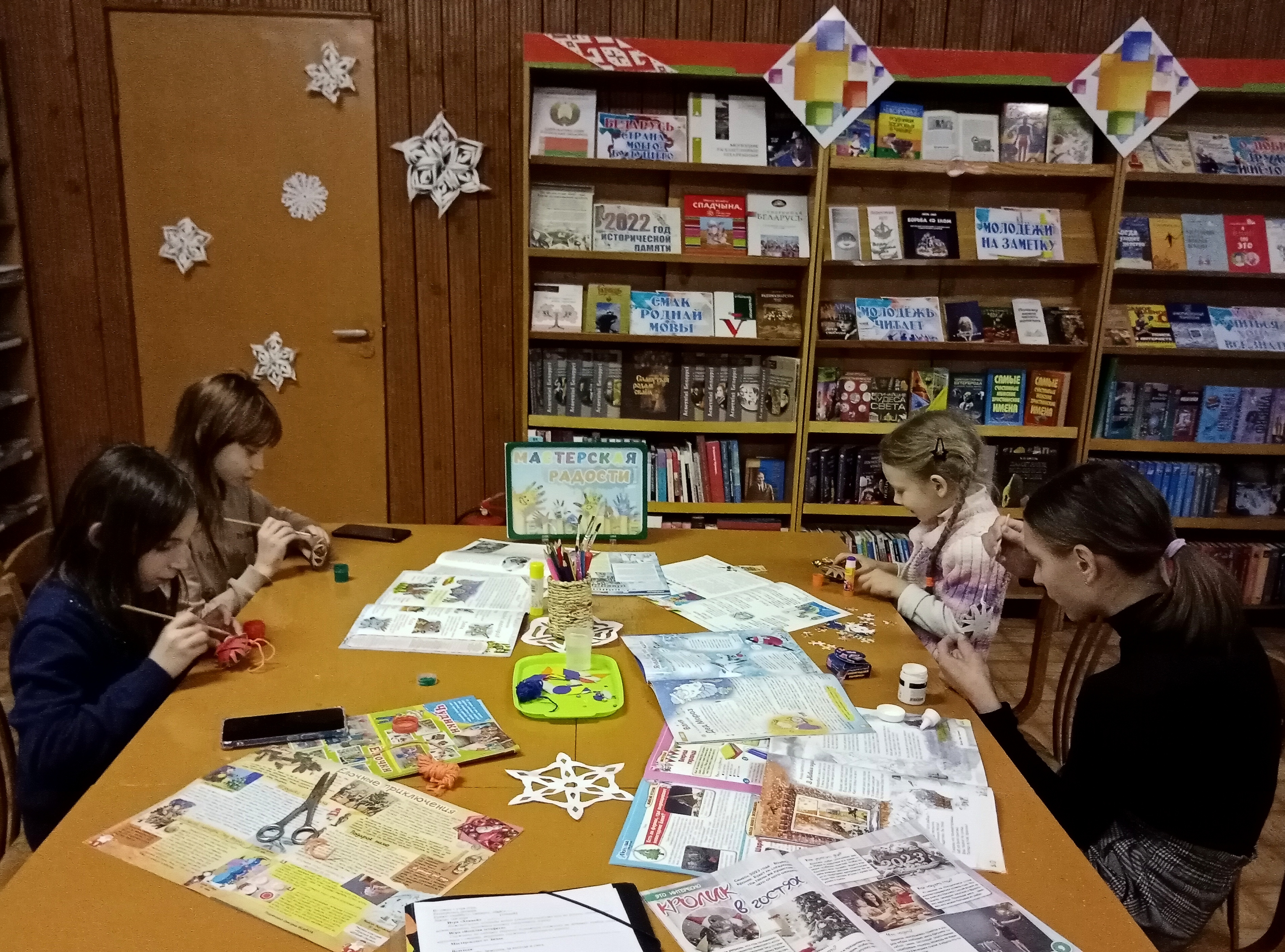 В отделе по обслуживанию детского читателя центральной районной библиотеки начала работать литературно-творческая мастерская «Прочитали-смастерили». Юные читатели принимают участие в мастер-классе по созданию любимых героев из прочитанной книги. Маленькие рукодельники делятся не только своими умениями, но и обсуждают народные традиции в их семьях. За время работы участники получают массу положительных эмоций от коллективного труда и общения, а готовые работы с гордостью могут подарить своим родным.