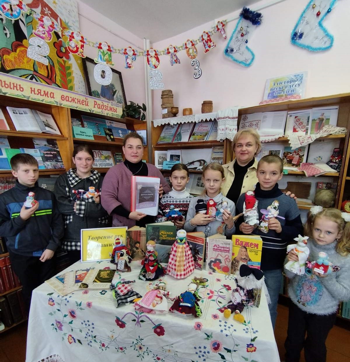 В библиотеке агрогородка Лобжа экспонируется выставка авторской куклы «Творенье наших рук», автор изделий - Олеся Михневич, участница любительского объединения «Лобжанская скарбніца». Коллекция обереговых кукол автора состоит из 19 изделий: Столбушка, Веснянка, Неразлучники», Метлушка, Домовой и др. Библиотекарь рассказала ребятам об истории возникновения тряпичной куклы, а мастерица кукол познакомила с технологией изготовления.