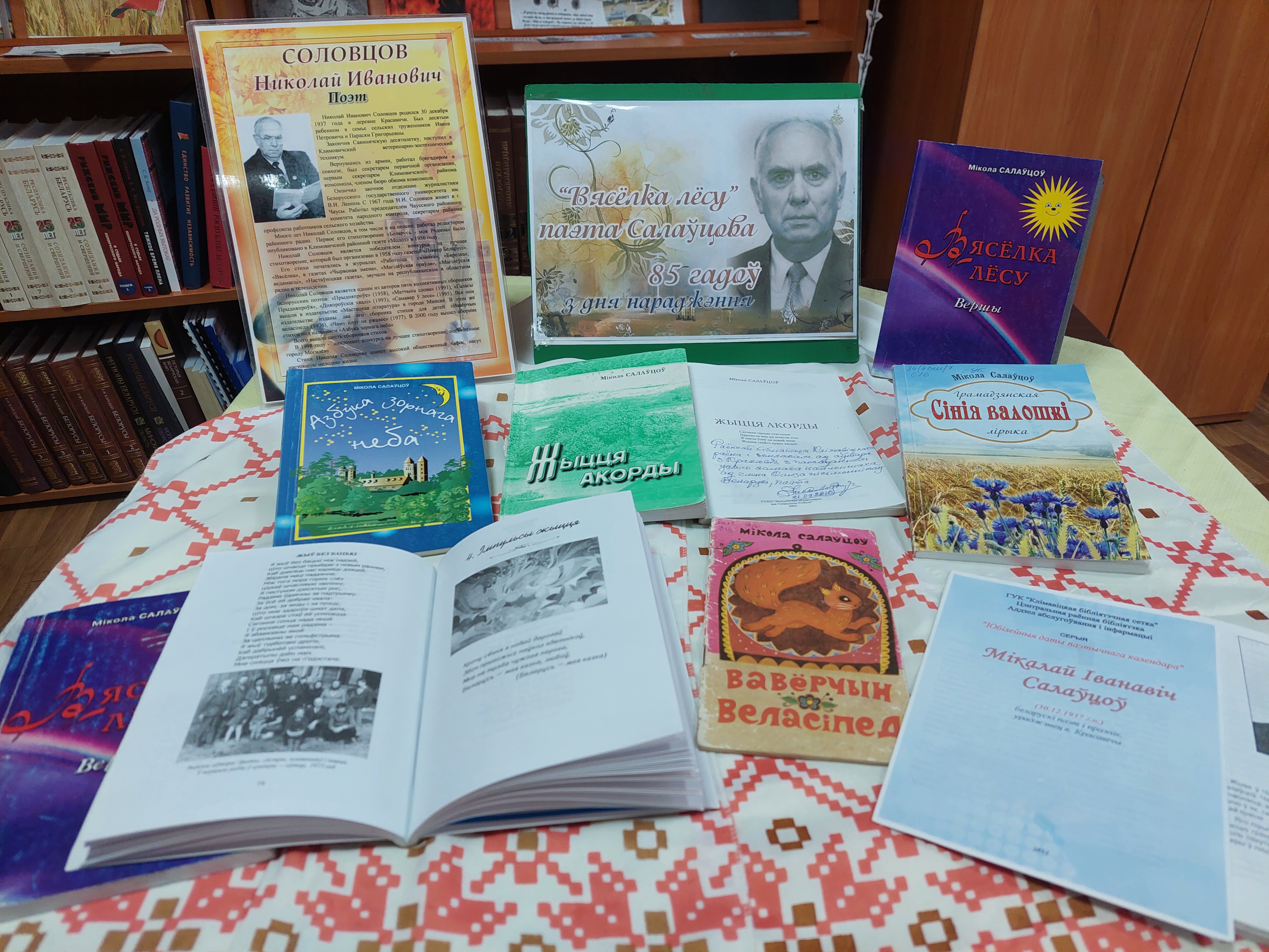 Запрашаем наведаць цэнтральную раённую бібліятэку і пазнаёміцца з кніжнай выставай “Вясёлка лёсу”. Зборнікі вершаў “Вавёрчын веласiпед”, “Азбука зорнага неба”, “Жыцця акорды”, “Вясёлка лёсу”, “Сінія валошкі” прадстаўлены ва ўсіх бібліятэках Клімавіцкага раёна. Біяграфічныя звесткі пра таленавітага паэта-земляка прадстаўлена ў краязнаўчай базе дадзеных Глядзець
