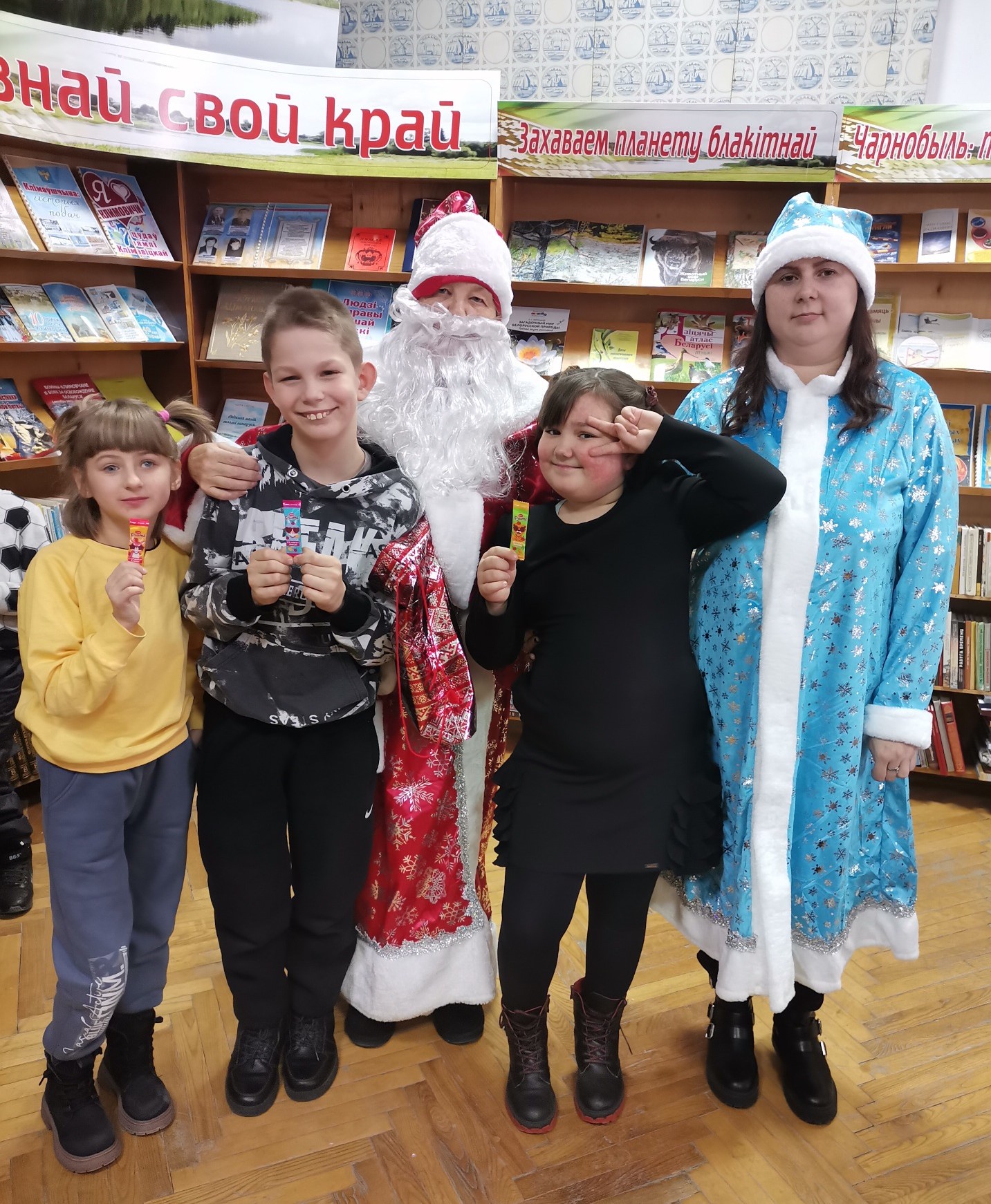 В этот день для ребят звучали песни и танцы: «Поём про Беларусь», «Сапожки», «Гляне сонца», «Зимний танец». Весело прошли литературные конкурсы и викторины «Слова, несущие добро» и «Сказочный эрудит». Особенно порадовали маленьких участников весёлые клоуны Клёпа и Кнопа, которые весело играли и зажигательно танцевали с ребятами.