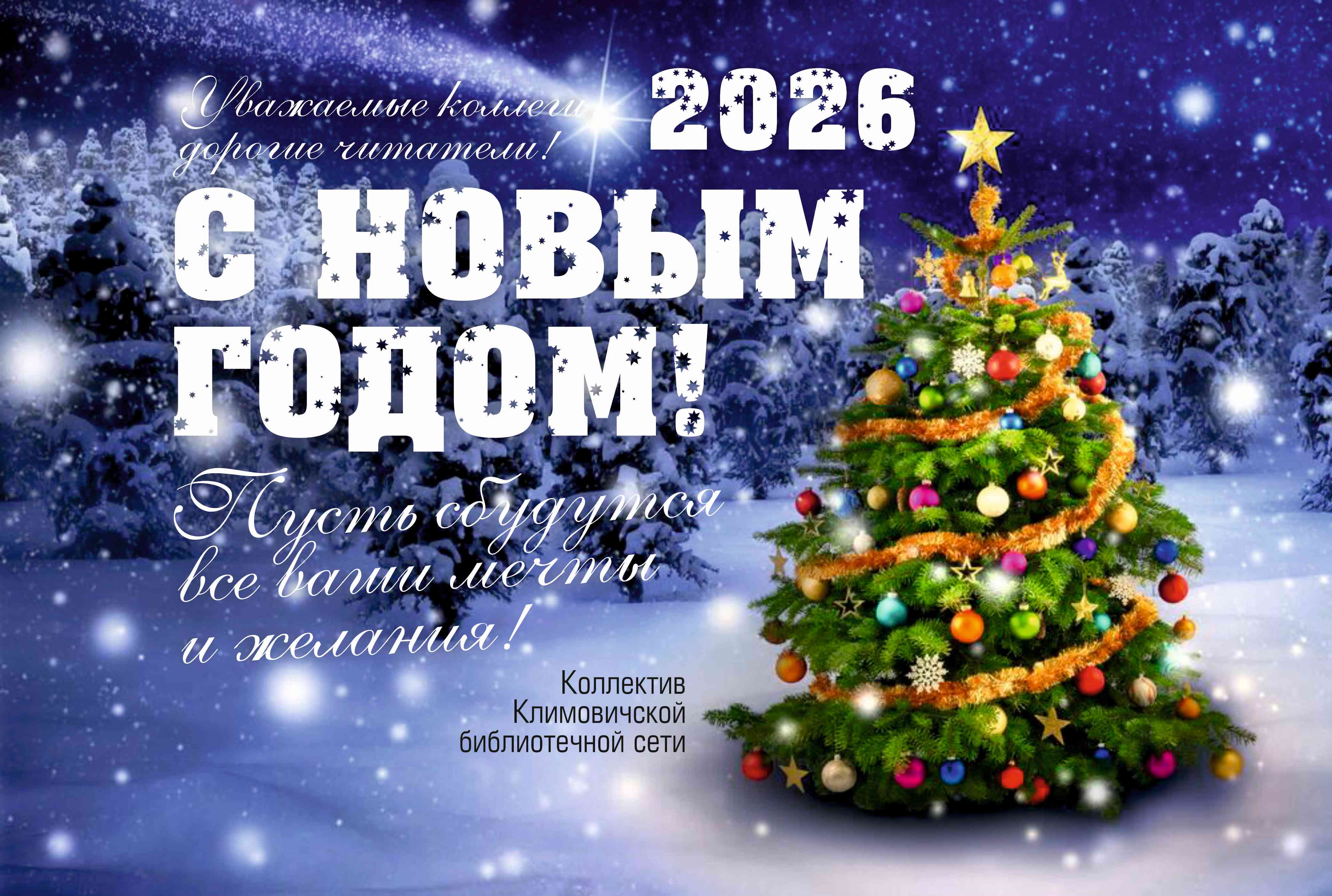 Приближается час, когда часы начнут отсчет новых секунд, новых страниц и новых глав. В этот предпраздничный, волшебный момент весь коллектив Климовичской библиотечной сети от всей души поздравляет вас с наступающим Новым годом!