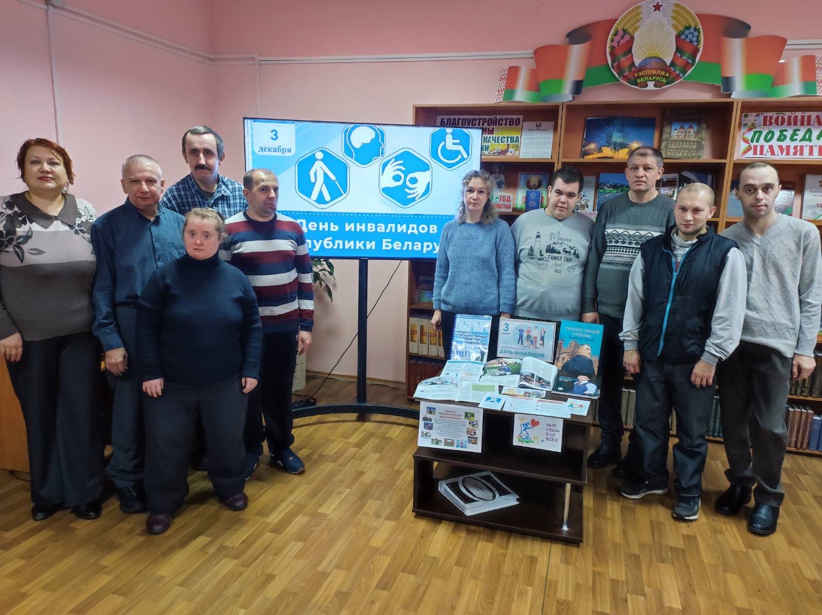 В рамках программы «Войдем в мир вместе» к этому дню в центральной районной библиотеке имени Ивана Пехтерева для людей с инвалидностью, посетителей отделения социальной реабилитации, абилитации инвалидов и дневного пребывания для граждан пожилого возраста Климовичского РЦСОН, прошел час доброго общения «Всегда прежде человек». Библиограф Кристина Старовойтова познакомила гостей библиотеки с книгой «Нязломны: Аляксей Талай», в которой рассказывается о борьбе за жизнь, преодолении трудностей, пути к олимпийским высотам, тяжелом труде и победе Алексея Талая – параолимпийского чемпиона, спортивного и общественного деятеля, бизнесмена, члена Конституционной комиссии, отца четверых детей.